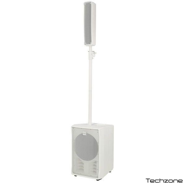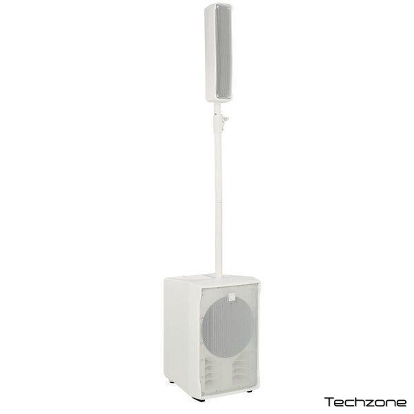 Двосмугова акустична система з цифровим мікшером і підсилювачем, 12" НЧ + 8 x 2,5". SPL 128 дБ, потужність 1400 Вт (пік), 40 Гц - 20 кГц. Кут покриття 120° x 30°, трохи нахилений. Інноваційна DSP обробка (FiRPHASE). Можливість монтажу на стійку, просте налаштування та транспортування. Колір білий, вхід 4 x combo XLR + TRS 1/4", USB аудіоінтерфейс stereo, Bluetooth stereo, вихід XLR (link) + AUX TRS 1/4", 8-канальний цифровий мікшер з численними FX, compressor, EQ, Amp Simulator, Graphic EQ на виходах Main та AUX, футсвіч, дистанційне керуванняiOS/Android. Phantom Power +48V, Hi-Z Line Input, ВШГ - 623 мм x 400 мм x 460 мм, вага 22,2 кг