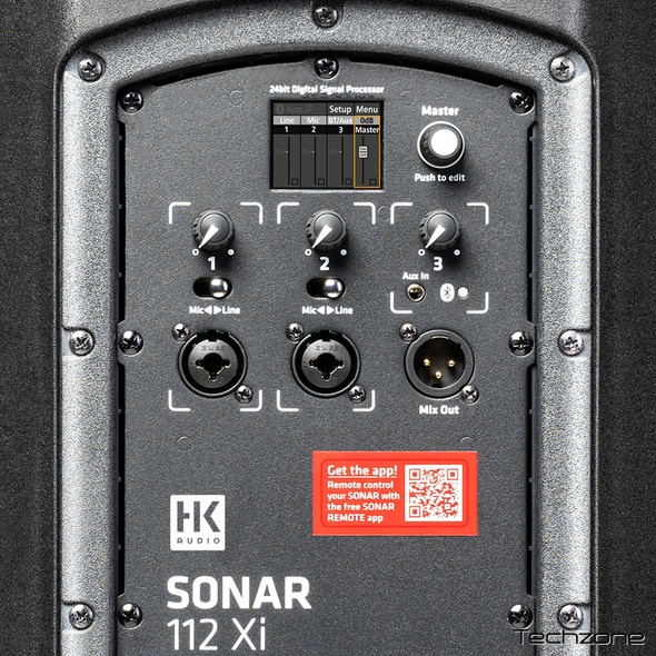 SONAR 112 Xi пропонує три вхідні канали: два для мікрофонних або лінійних сигналів і один AUX-канал, який приймає аналогові сигнали, а також через Bluetooth 5.0. Музику можна передавати у стереорежимі на два динаміки SONAR Xi через Bluetooth TWS (справжнє бездротове стерео). Гучність і 3-смуговий еквалайзер для кожного каналу можна інтуїтивно регулювати за допомогою поворотного регулятора та кольорового дисплея. Завдяки безкоштовному додатку SONAR REMOTE (для iOS і Android) усіма функціями також можна керувати дистанційно для додаткової зручності.