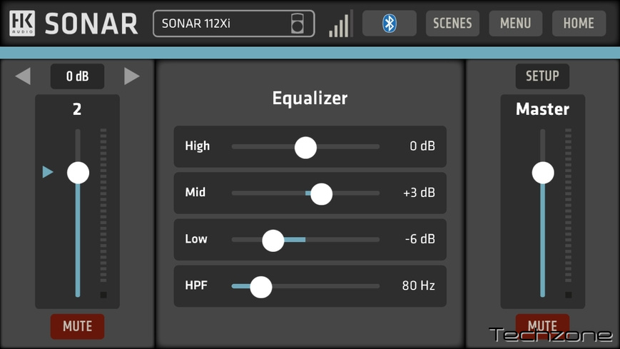 Програма SONAR REMOTE для планшетів і смартфонів з iOS і Android — це набагато більше, ніж просто пульт дистанційного керування для вбудованого цифрового мікшера. Він дозволяє контролювати всі налаштування та функції моделей SONAR Xi, включаючи параметри 3-смугового еквалайзера для кожного каналу. Ви також можете зберігати сцени, щоб робити регулярно використовувані пресети доступними на вимогу, наприклад налаштування часто використовуваних мікрофонів, змінені налаштування SONAR Xi або базові конфігурації для різних місць.