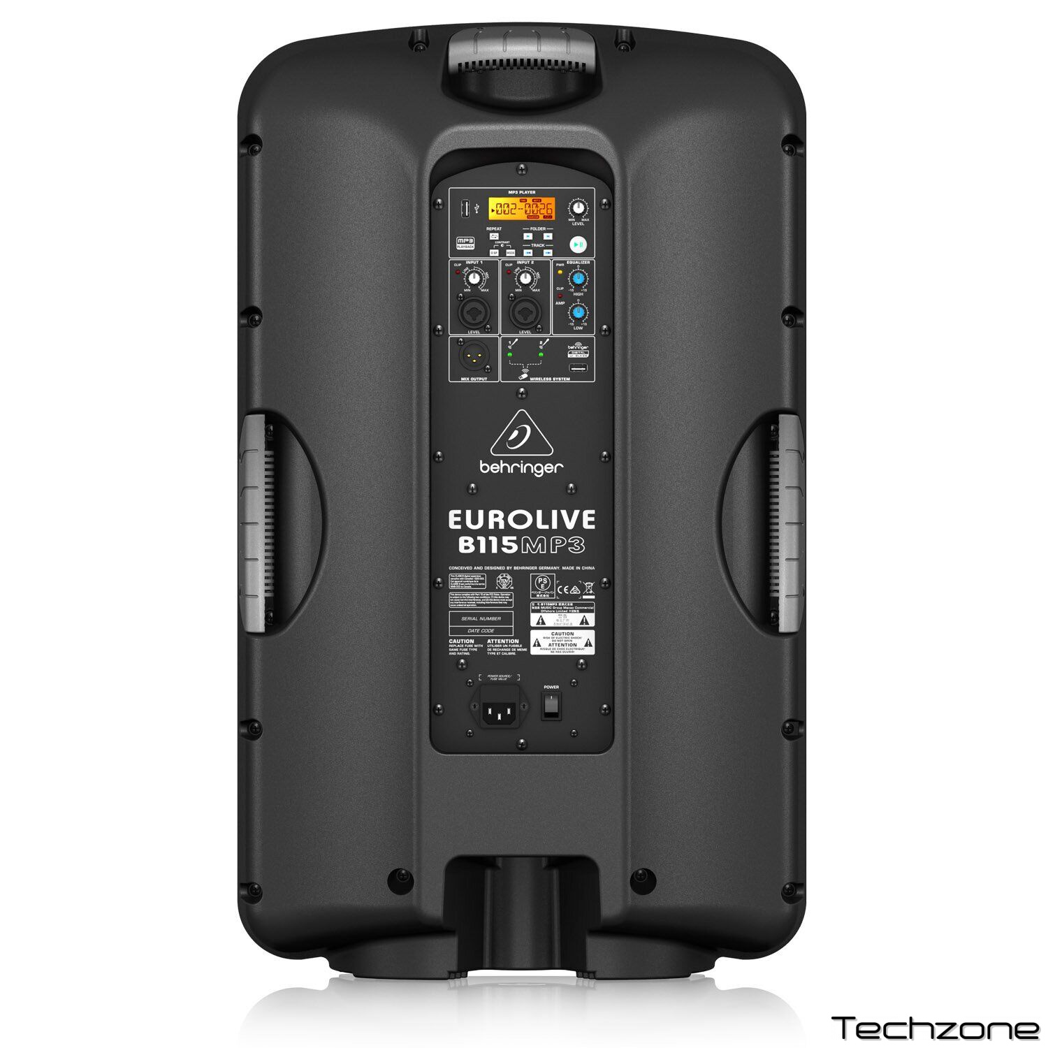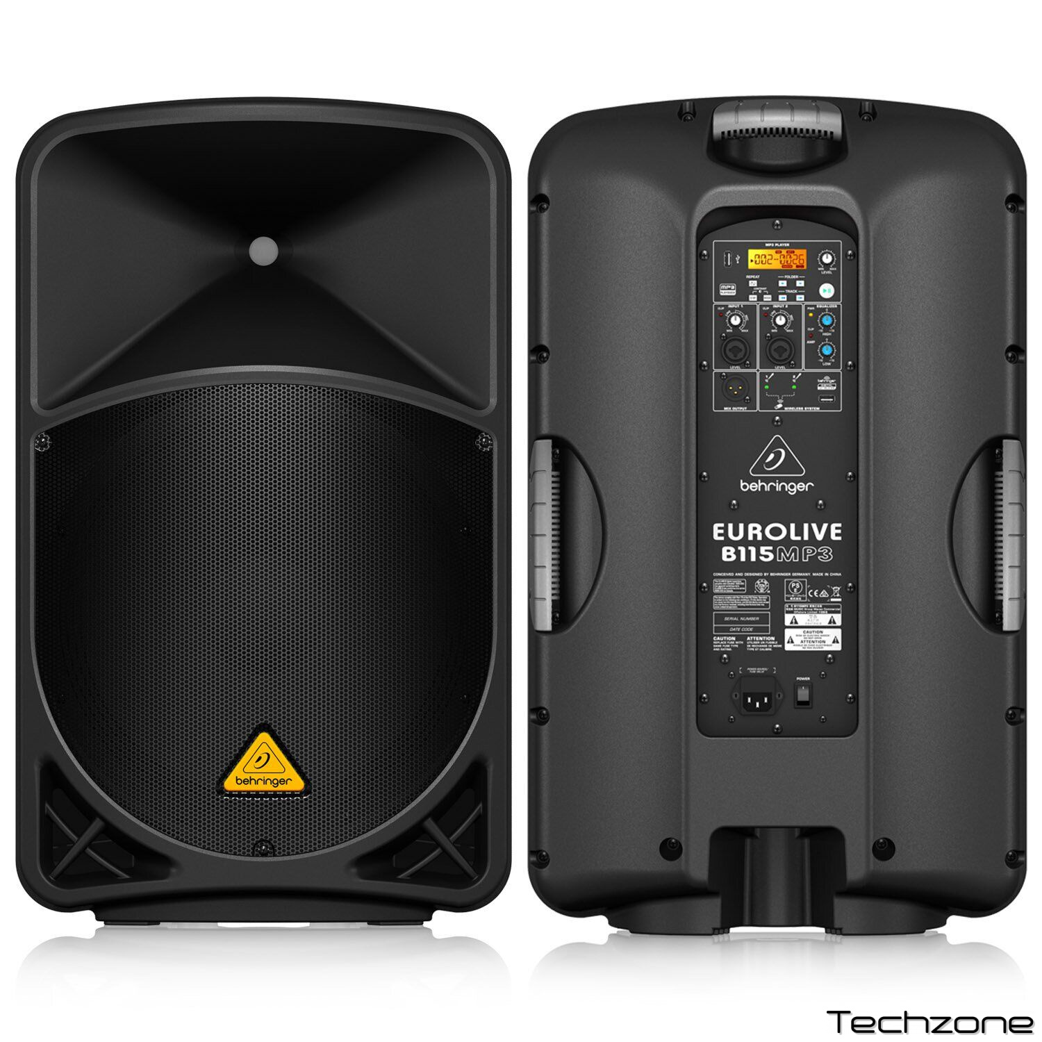 В эту 1000 Вт систему включен запатентованный DSP (цифровой процессор) с двух полосным эквалайзером, активным кроссовером, ограничителями с двойной защитой и корректированием, гарантирующие очень низкий уровень искажения. LF и НF преобразователи разработаны специально для каждого применения. B115MP3 имеет массивный низ, отчетливую середину и кристально чистый верх.