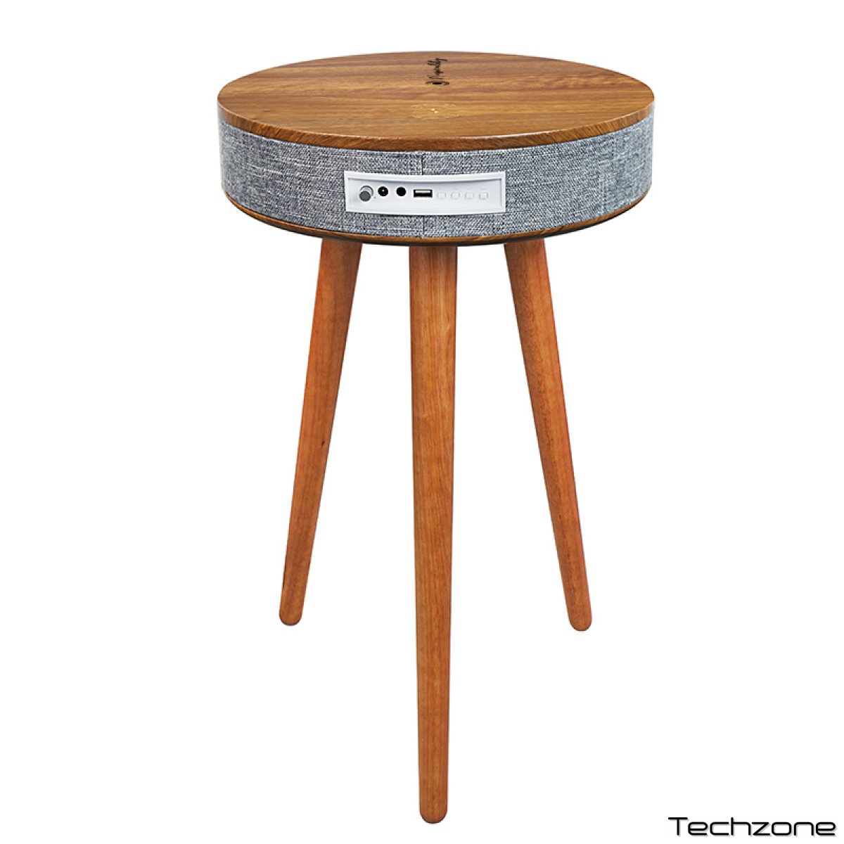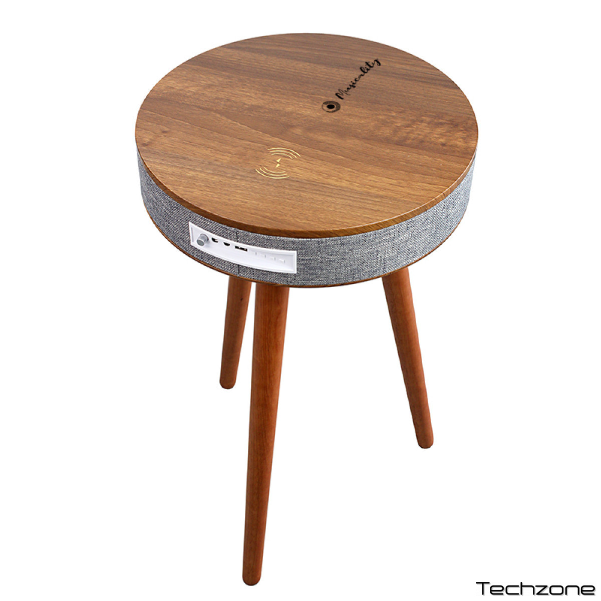 Musicality STBL10 _SoundTable – это небольшой журнальный столик, выполненный в скандинавском стиле. Он сочетает в себе минималистичный дизайн с умными технологиями, предлагая как эстетическую привлекательность, так и практичную функциональность. Компактный размер стола делает его идеальным для небольших жилых помещений или компактных офисов. В стол встроена акустическая система с частотным диапазоном 100 Гц – 18 кГц. Bluetooth версии 5.0 позволяет беспроводное воспроизведение музыки со смартфонов, планшетов и других девайсов. Радиус действия Bluetooth составляет 10 метров. На поверхности стола расположен модуль для беспроводной зарядки, позволяющий удобно заряжать смартфоны, поддерживающие эту функцию. Достаточно просто положить телефон на специальное место, чтобы начать процесс зарядки. На панели управления расположены разъемы AUX и Jack 1/8", порт USB Type-A, а также переключатель питания, кнопки переключения режимов, предыдущая песня/понижение громкости, воспроизведение/пауза и кнопка следующей песни/повышения уровня громкости. Порт USB Type-A предназначен для подключения флэш-накопителей и воспроизведения музыки с них. AUX-разъем позволяет подключить аудио устройства через кабель для стабильного сигнала без использования Bluetooth. Разъем Jack 1/8" (3,5 мм) позволяет подключить проводные наушники непосредственно к столу для приватного прослушивания.