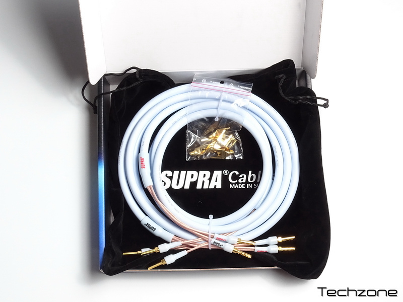 Supra XL ANNORUM 2X3.2 COMBICON обробив в заводських умовах універсальними патентованими роз'ємами Supra COMBICON CRIMP, які дозволяють використовувати підключення бананами або лопатками в залежності від вимог акустики і підсилювача. Поставляється кабель з бананами і лопатками у фірмовій картонній коробці Supra в оксамитовому чохлі.