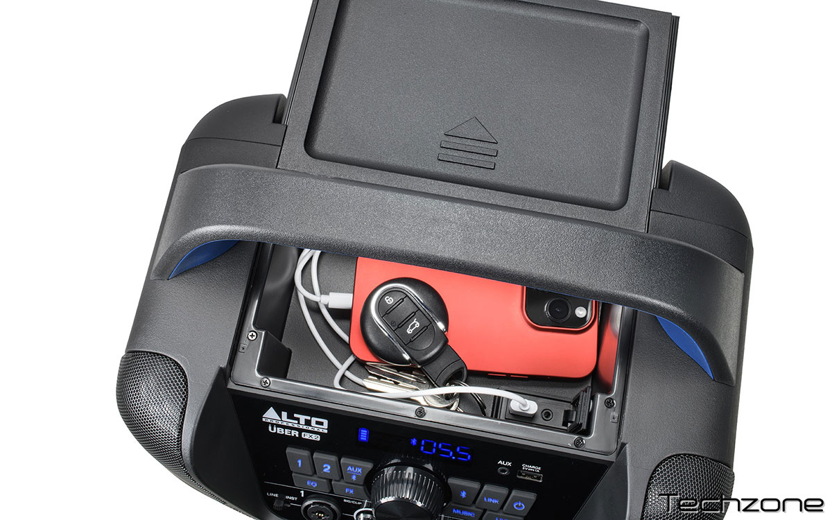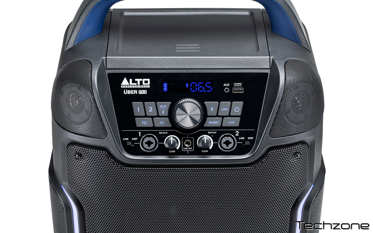 UBER FX MK2 — это мощная портативная акустическая система с питанием от аккумулятора и технологией Bluetooth Его звуковой массив из 5 динамиков с углом охвата 320 градусов — идеальное решение для обеспечения часов чистого и энергичного звука с микрофонов, инструментов, мобильных устройств и многого другого. UBER FX MK2 предназначен не только для музыкантов — он также идеально подходит для многих других мероприятий в помещении и на открытом воздухе, включая деловые встречи, тренинги, вечеринки на заднем дворе и церемонии награждения/выпускные церемонии — а благодаря работе до 100 часов не имеет значения, есть доступ к сети переменного тока или нет. Мощный и ясный звук Инновационная система с 5 динамиками мощностью 200 Вт (пик) оснащена 8-дюймовым низкочастотным динамиком, стерео высокочастотными динамиками и широкополосными боковыми динамиками, обеспечивающими зону прослушивания аудитории в 320°. Боковые динамики также обеспечивают превосходный мониторинг живого выступления. UBER FX MK2 имеет два входных канала, каждый со своим независимым регулятором громкости, двухполосным эквалайзером и цифровыми эффектами, а также дополнительный третий вспомогательный вход на мини джеке 3,5 мм. Полностью беспроводной Благодаря Bluetooth 5.0 UBER FX MK2 обеспечивает надежную потоковую передачу, линк и управление: вы можете осуществлять потоковую передачу с любого устройства на UBER FX MK2 и подключать по беспроводной сети второй UBER FX MK2, чтобы создать стереофоническую акустическую систему с помощью вашего любимого приложения для потоковой передачи музыки. Приложение Alto Pro для iOS и Android обеспечивает беспроводное управление функциями микширования для удобного управления из любого места. Простой микшер с экраном позволяет легко выбирать канал и управлять всеми параметрами. Портативный и удобный Uber FX MK2 невероятно легко транспортировать благодаря телескопической ручке и колесам; Он также имеет удобный верхний отсек для хранения вещей, боковую открывашку для бутылок и подсветку передней панели. Также имеются два USB-порта для зарядки, позволяющие заряжать ваши устройства.