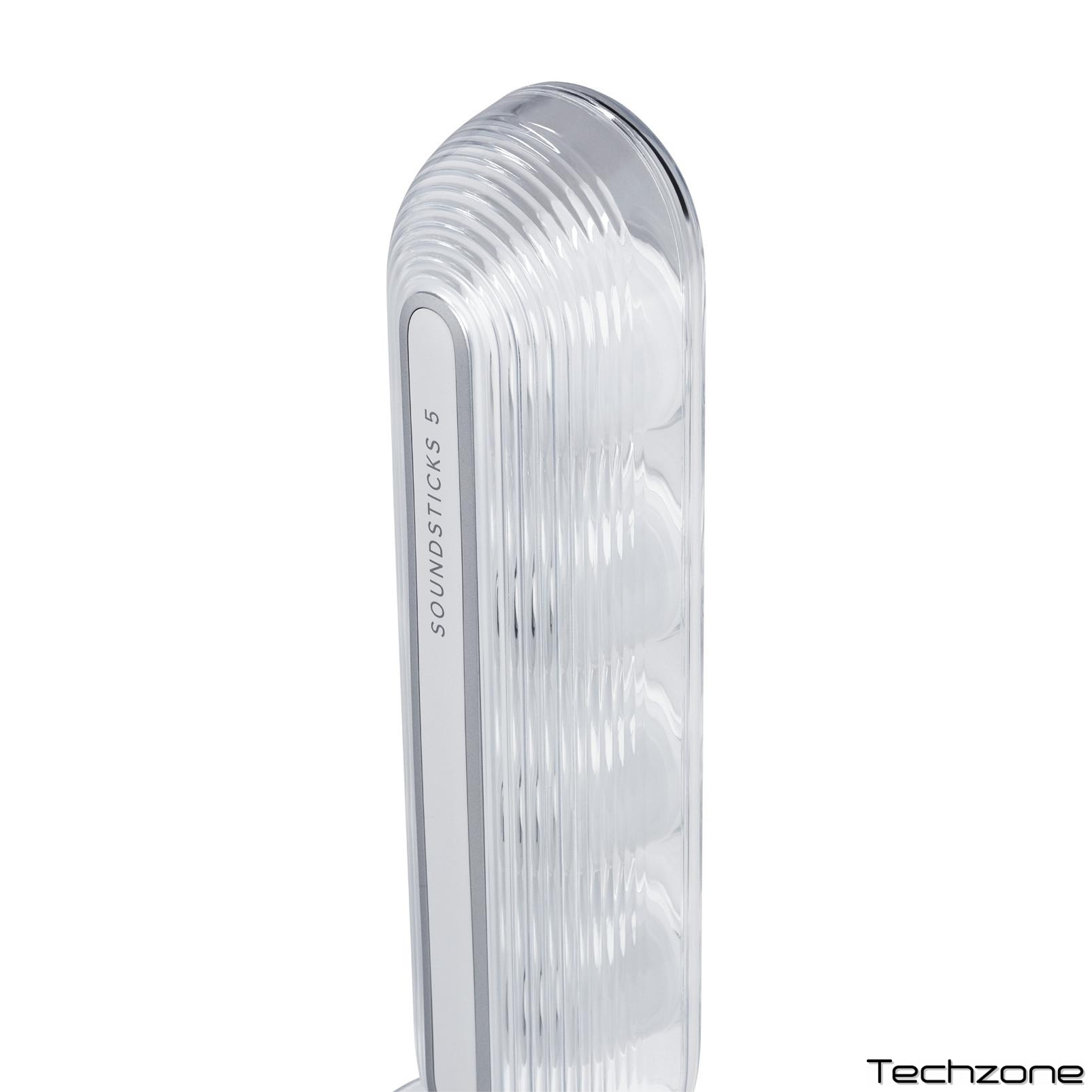 SoundSticks 5 — это переосмысление культового дизайна: полностью прозрачный купол в стильных оттенках с премиальными металлическими акцентами. Приподнятый сабвуфер выполняет не только аудиофункцию, но и выступает изысканным визуальным элементом. Продуманный интерфейс подключения и интуитивно понятное сенсорное управление, расположенное в нижней части правого динамика, обеспечивают удобство в использовании.