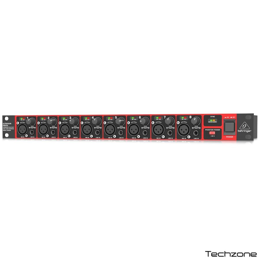 8 додаткових мікрофонних передпідсилювачів MIDAS, підключення вихідних сигналів через протокол ADAT і далі в канали звукопідсилення через XLR на тиловій панелі для миттєвого перетворення, що забезпечується конвертером Cirrus Logic 24-bit, фантомне живлення на всіх входах для мікрофона, обробка 44,1 або 48 кГц, блок живлення "Planet Earth", що забезпечує мале споживання енергії, безшумний звук і роботу в 100-240 В – ось деякі особливості перетворювача Ultragain Digital ADA8200. Конвертер укладений в рековий корпус для установки в стійку.