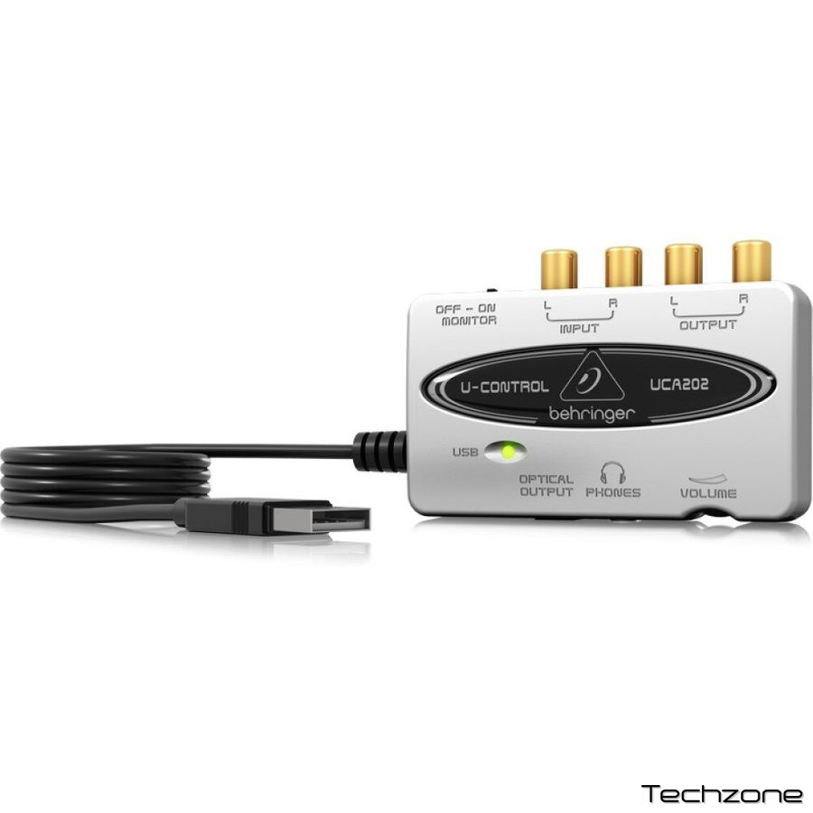 BEHRINGER UCA202 позволяет подключать к компьютеру инструменты и другие аудиоустройства, эффективно объединяя аналоговый и цифровой миры. Для этого он предоставляет два аналоговых моно входа и выхода (для мониторинга), возможность подключения по USB и дополнительный оптический выход S / PDIF. Стереовыход для наушников оснащен специальным регулятором уровня и позволяет слушать как вход, так и выход.