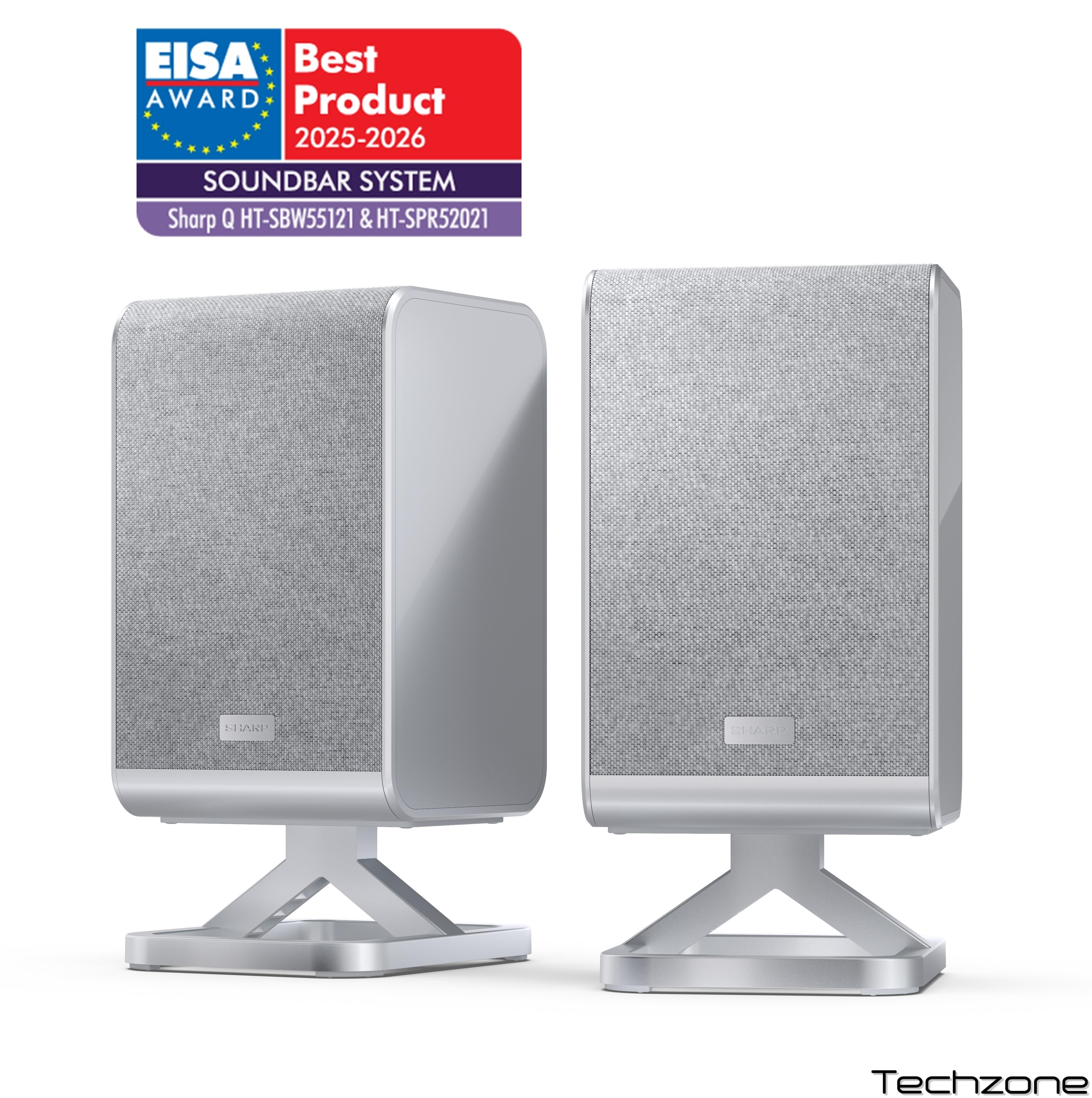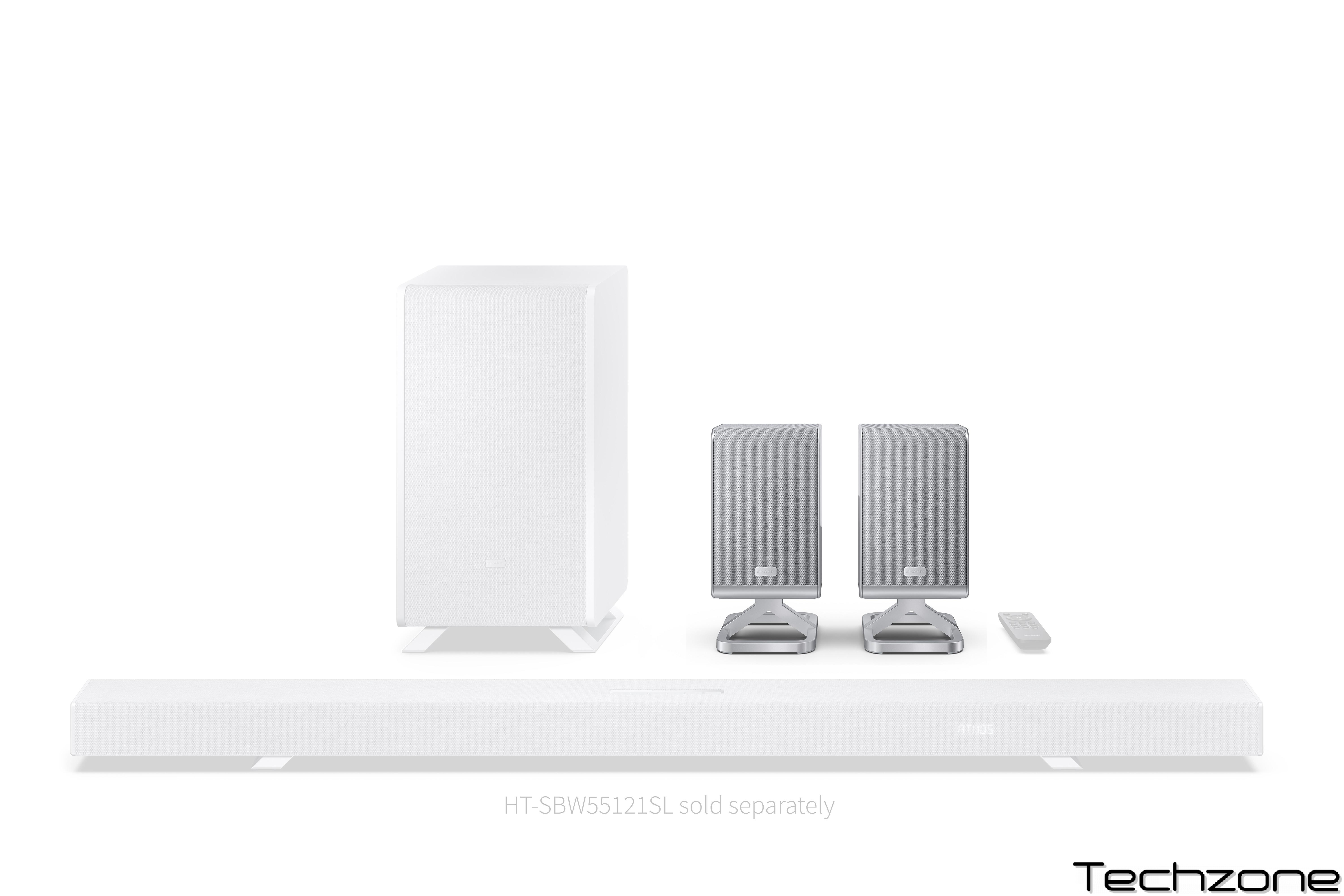 Підключіть ці 2 бездротові задні динаміки об'ємного звуку 1.0.1 кан. до саундбара Sharp «Q» для покращеного повного об'ємного звуку з Dolby Atmos® та DTS:X®.