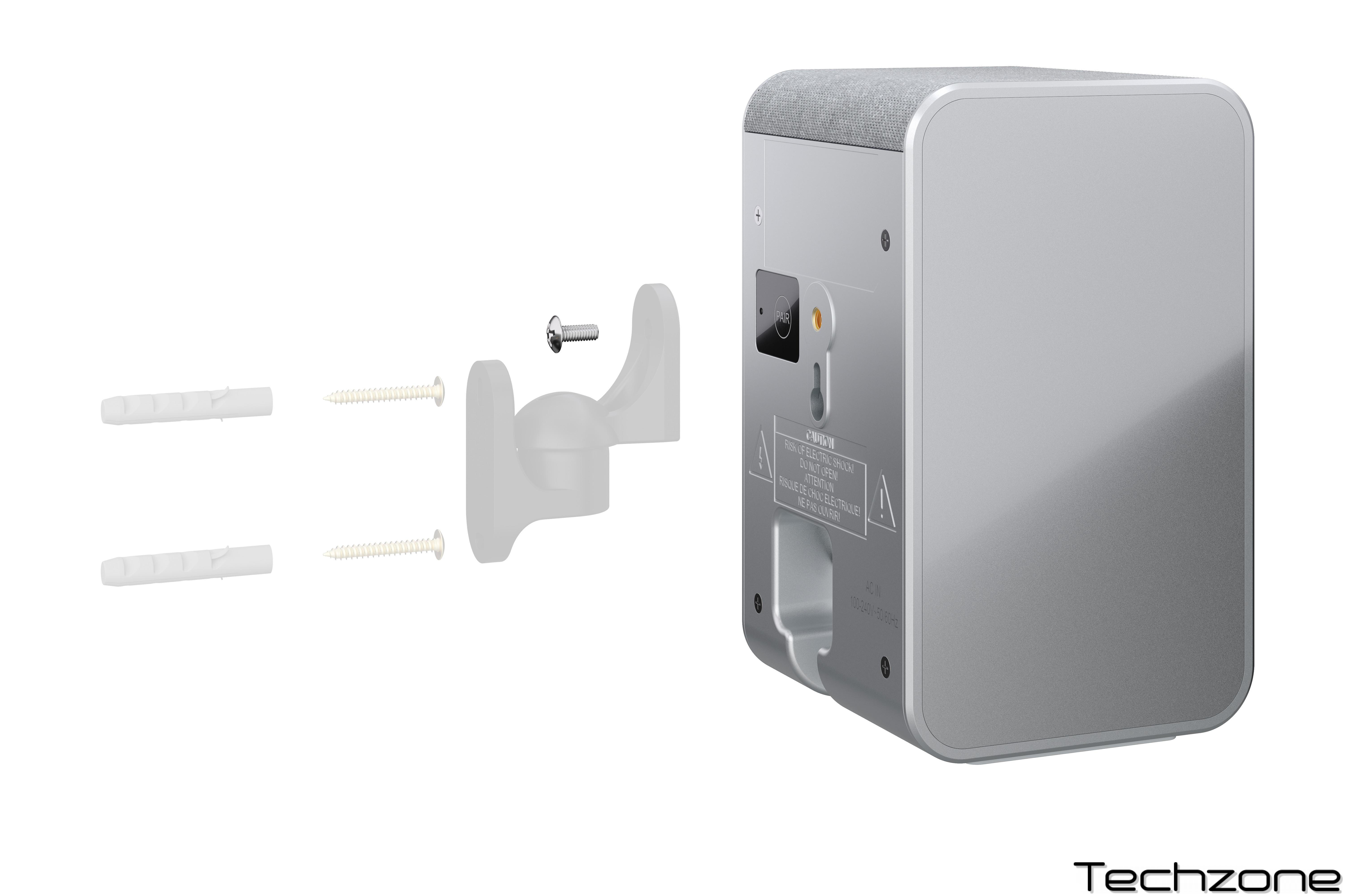 Комплектація: 2 бездротові колонки, підставки (високі та низькі), кабелі живлення, кріплення для настінного монтажу, інструкція користувача