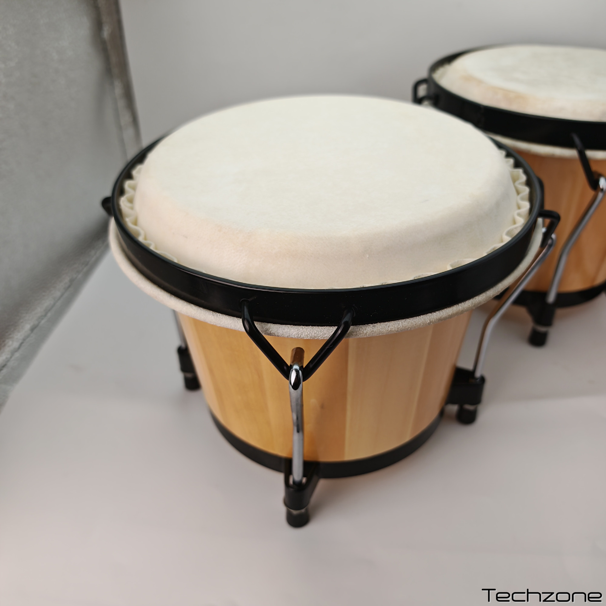Корпус выполнен из прочного ABS-пластика, что делает его легким и долговечным, а мембраны из овечьей кожи обеспечивают натуральное звучание, которое трудно воспроизвести синтетическими материалами.