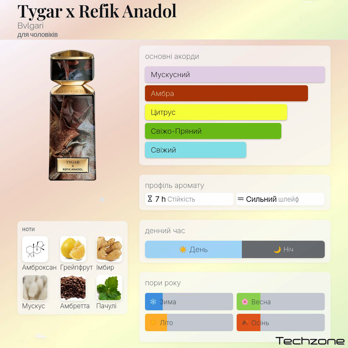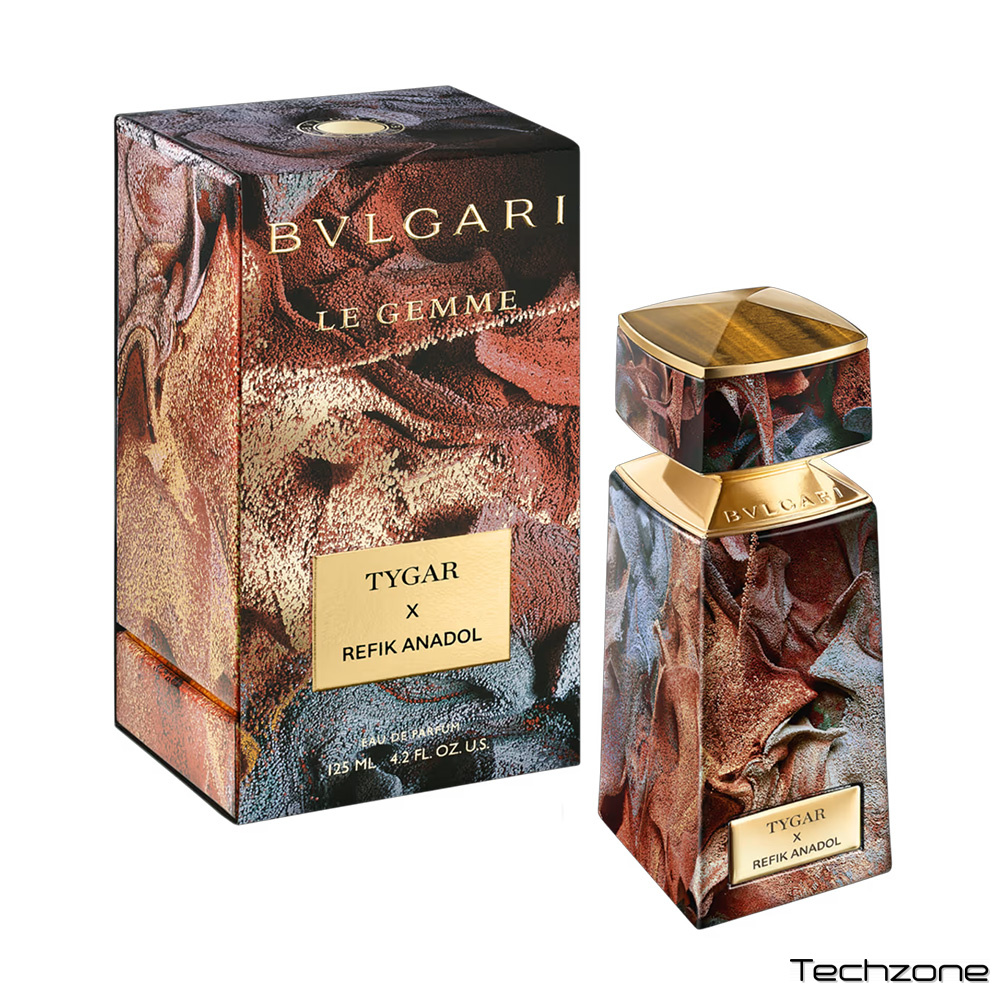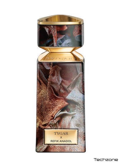 «Лімітована серія Bvlgari Le Gemme Tygar x Refik Anadol є свідченням глибокого зв'язку бренду зі світом мистецтва та його відданості інноваціям, зберігаючи при цьому свою багату спадщину. Рефік Анадол, піонер мистецтва на базі штучного інтелекту, створив унікальний витвір мистецтва, який одягає флакон, обкладинку та коробку, надаючи видимої форми тому, що невидиме: аромату. Складна глибина творіння Рефіка Анадоля візуально відображає контраст між цитрусовими та деревними нотами, що лежить в основі аромату Bvlgari Le Gemme Tygar. Він оживає залежно від кута, пропонуючи мультисенсорний досвід завдяки захопливій грі світла та текстури. Текстуровані шари сонячного золота, платиново-сірого та мідно-коричневого кольорів ілюструють акорди свіжого, соковитого грейпфрута та вишуканої амбри, інтенсивних землистих тонів, що додають емоційного виміру. Як у цифрових творах мистецтва, так і в ароматах перше враження та вплив дивовижні. База щільна, але все ще містить світло та енергію».