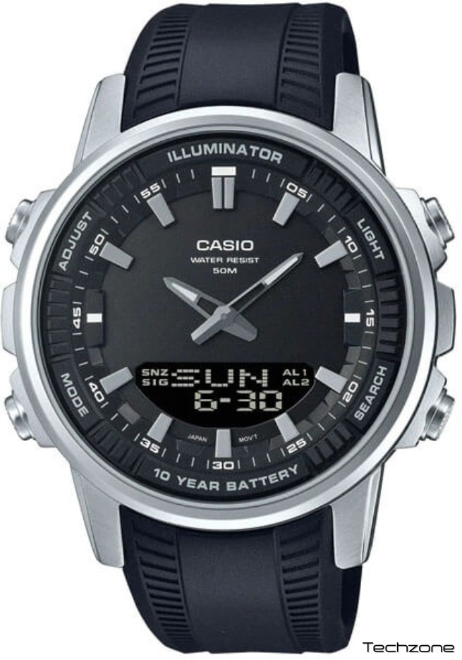 Простий і функціональний годинник від Casio - аксесуар, який без сумніву підійде будь-якому чоловікові. Циферблат підсвічується світлодіодом. Післясвітіння. Колір підсвічування: помаранчевий. Необритове світлонакопичувальне покриття забезпечує тривале післясвітіння в темряві навіть після короткочасного перебування на світлі. Записна книжка на 30 осередків пам'яті для запису імен і телефонних номерів, кожен запис може містити текст із 8 букв і 16 цифр. 12-ти і 24-х годинний формат часу. Секундомір з точністю показань 1/100с і часом вимірювання 24год. SPLIT-хронограф. Таймер зворотного відліку від 1хв до 24год. Світовий час - 30 міст (29 часових поясів). Функція увімкнення/вимкнення літнього часу. Батарея розрахована на 10 років. Задня кришка кріпиться на 4-х гвинтах. Ремінець із класичною застібкою.