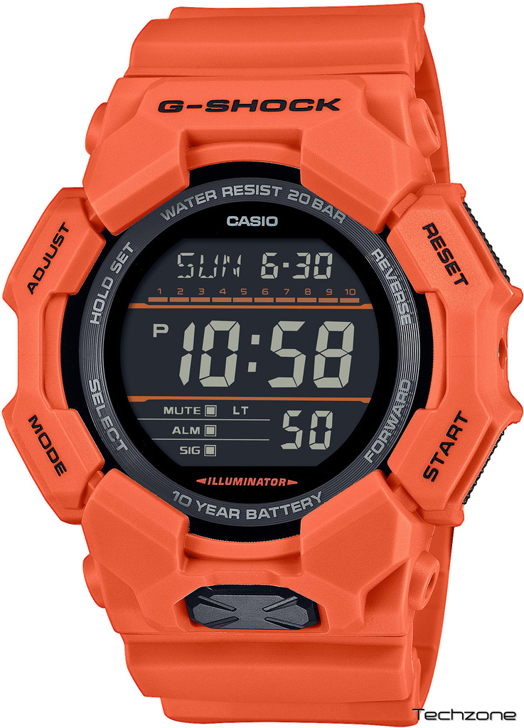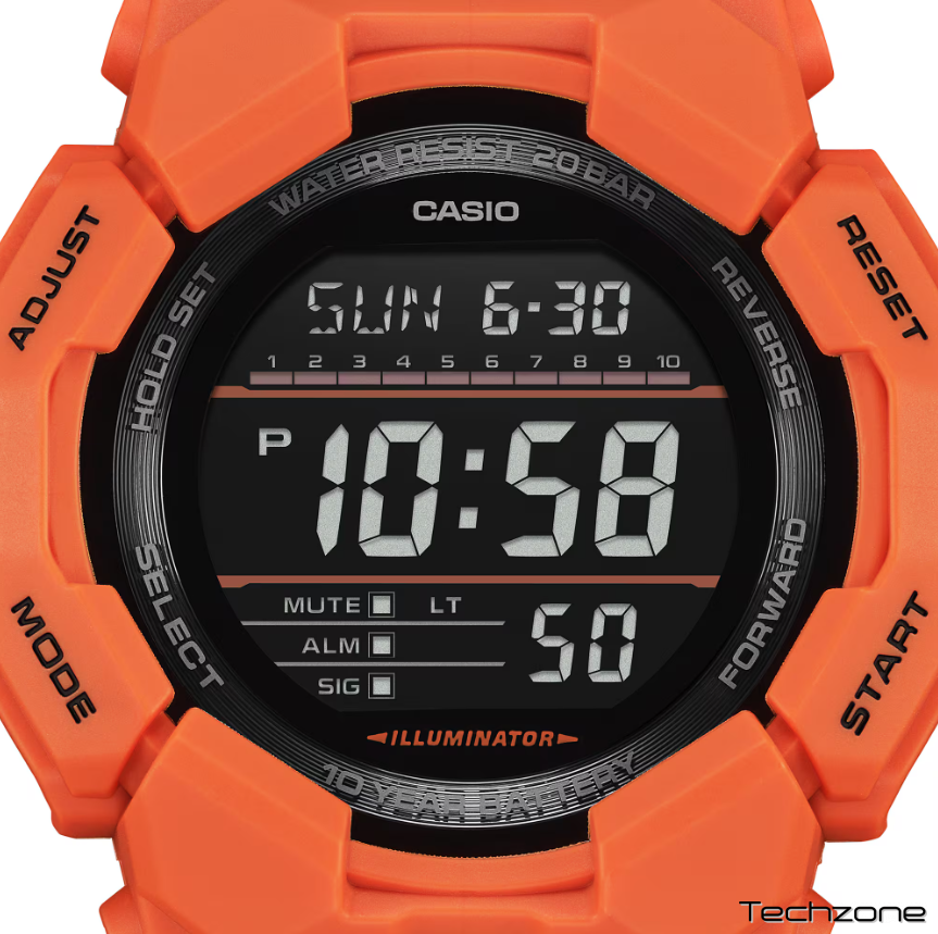 Цифровий GD-010 пропонує зручні функції, такі як світовий час і секундомір, а також яскравий світлодіодний індикатор, який легко активувати за допомогою великої кнопки на передній панелі корпусу, що забезпечує видимість навіть у темряві.