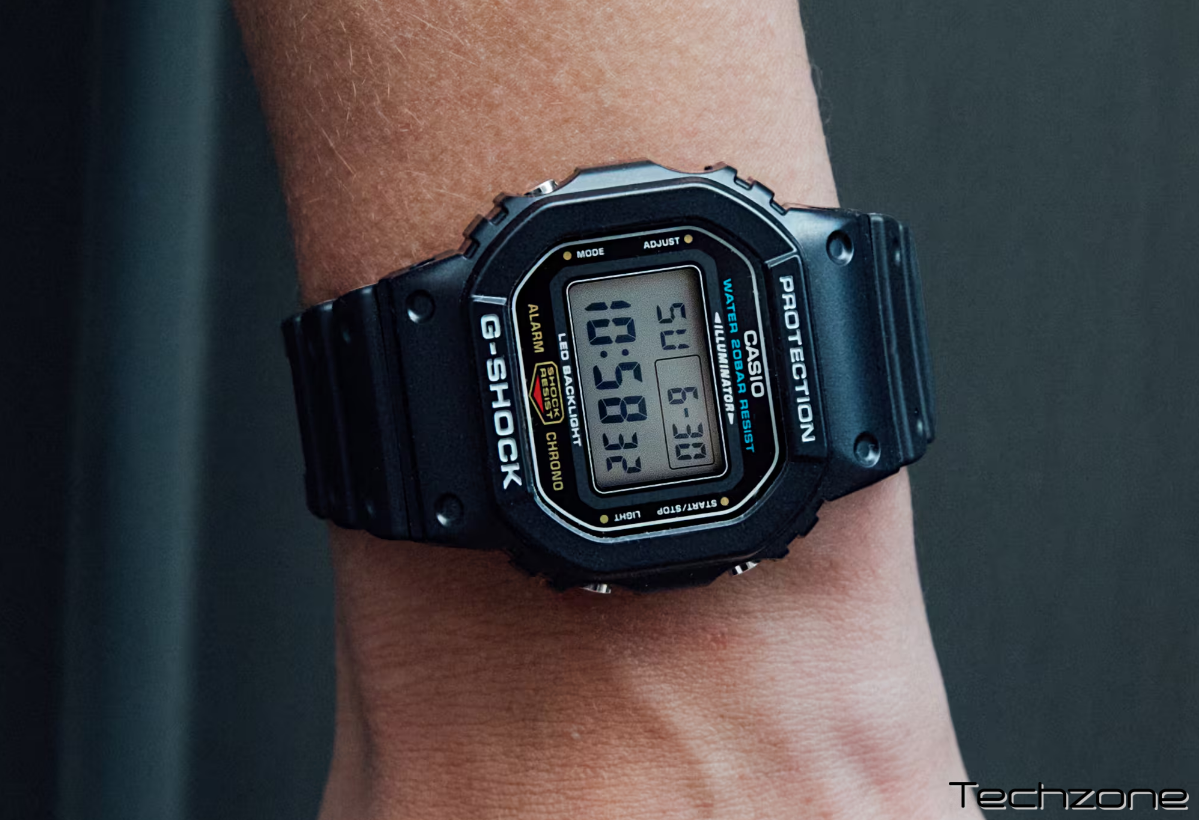 Инновации в ударопрочности сформировали идентичность G-SHOCK, когда первая серия 5000 была разработана в 1983 году. Этот прорыв в часовой индустрии был известен в телевизионной рекламе, в которой профессиональный хоккеист попал мячом в перчатку вратаря, и эта реклама была воспроизведена в современном стиле.