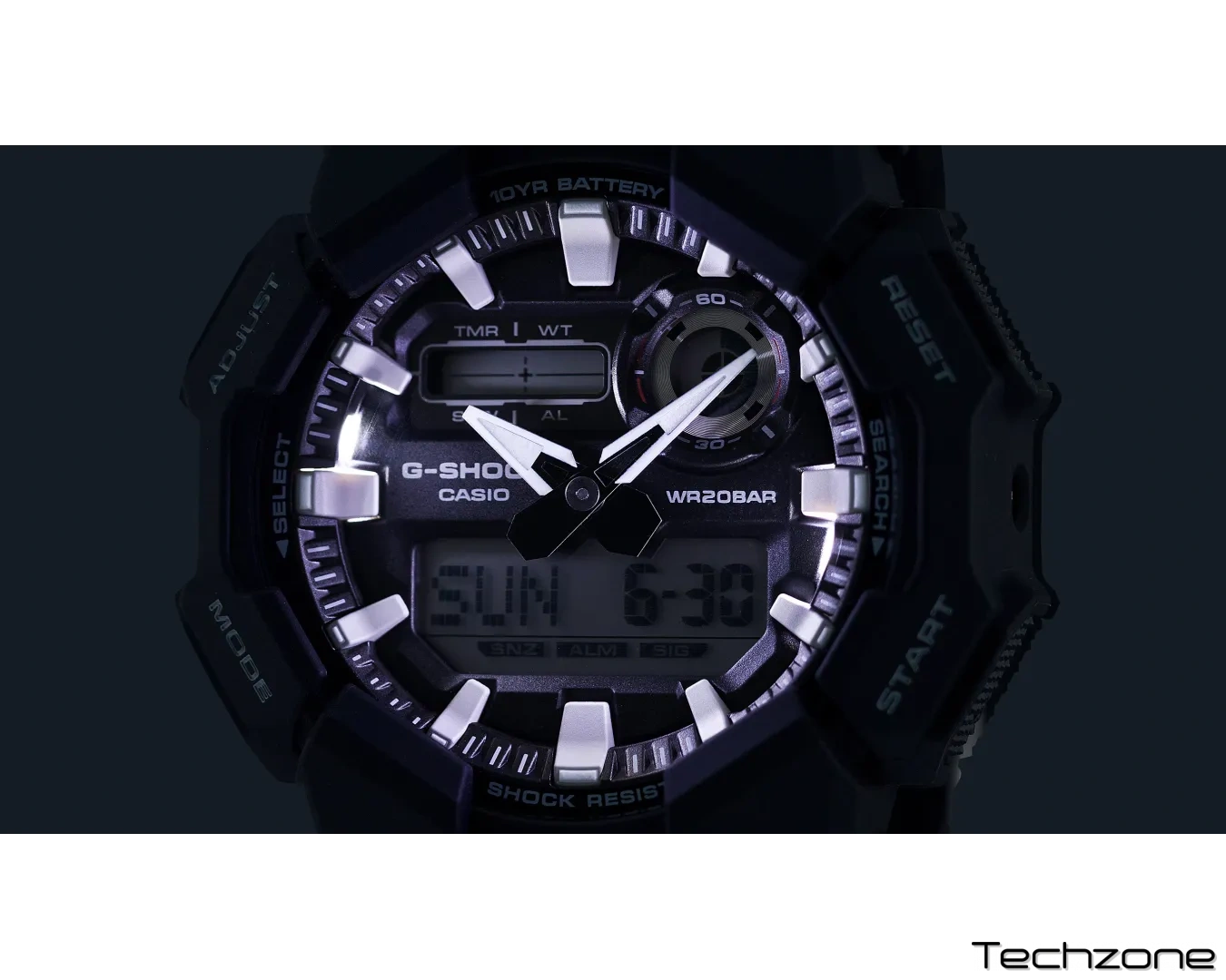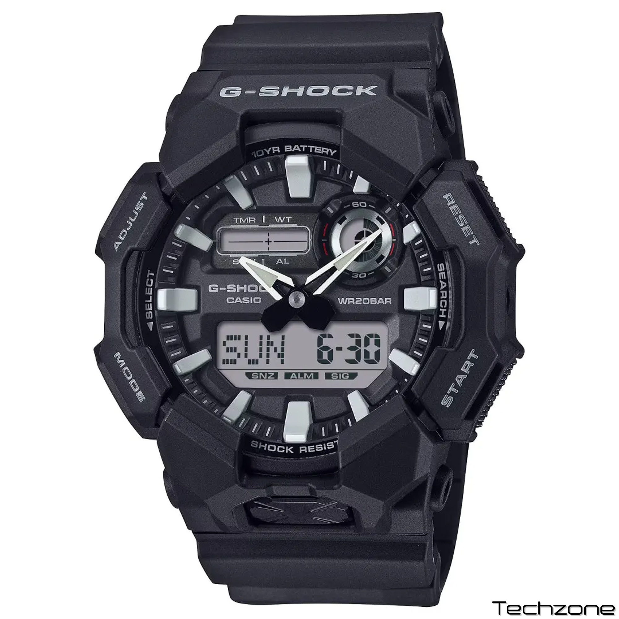 Насолоджуйтесь життям із меншою кількістю замін батареї з G-SHOCK у великому корпусі з 10-річною батареєю, про яку вам не доведеться турбуватися протягом багатьох років. Аналогово-цифровий GA-010 пропонує такі зручні функції, як світовий час і секундомір, а також високояскраве світлодіодне світло, до якого можна легко отримати доступ за допомогою великої кнопки на передній частині корпусу, забезпечуючи видимість навіть у темряві. Виготовлений із біологічної смоли та оснащений 10-річним акумулятором, цей G-SHOCK чудово підходить, якщо ви хочете зменшити вплив на навколишнє середовище. Доступний вибір чорних робочих колірних схем для крутого дизайну, який легко переходить від повсякденних умов до робочих ситуацій.