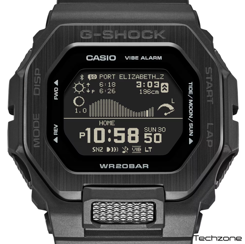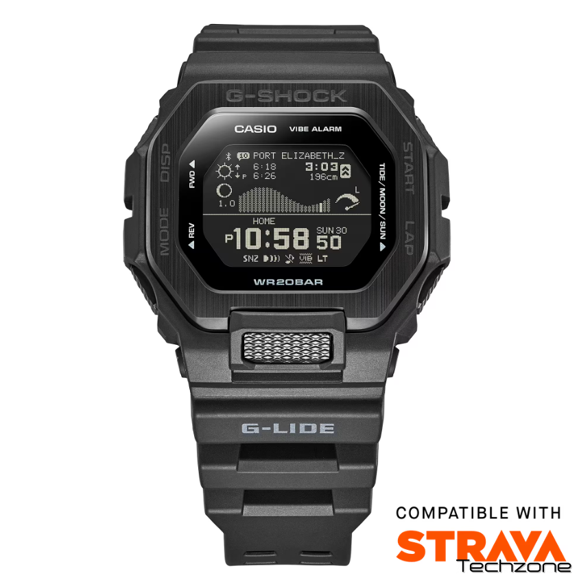 Покоряйте волны с G-LIDE, линейкой экстремальных видов спорта G-SHOCK. В цветовой гамме, вдохновленной ночным серфингом, часы GBX-100 с возможностью подключения к смартфону предоставляют всю необходимую серферам информацию прямо на запястье. Просто настройте приложение на любое из 3300 мест для серфинга по всему миру, чтобы проверять приливы и условия дневного света прямо там, где вы находитесь. Наслаждайтесь четчайшим экраном благодаря высококачественному ЖК-дисплею Memory in Pixel (MIP). Проверяйте графики приливов, возраст Луны, время и уровень приливов/отливов, а также время восхода/заката солнца — все одним взглядом. Разработанный, чтобы выдерживать даже самые сумасшедшие выбивания на бурных волнах, защита обеспечивает защиту от ударов на 360°. Безель, состоящий из сочетания смолы и металла, разработан для исключительности. Контрастная шлифовка и тонкая отделка верхнего безеля GBX-100 из нержавеющей стали добавляют завершающего штриха этим стильным спортивным часам.