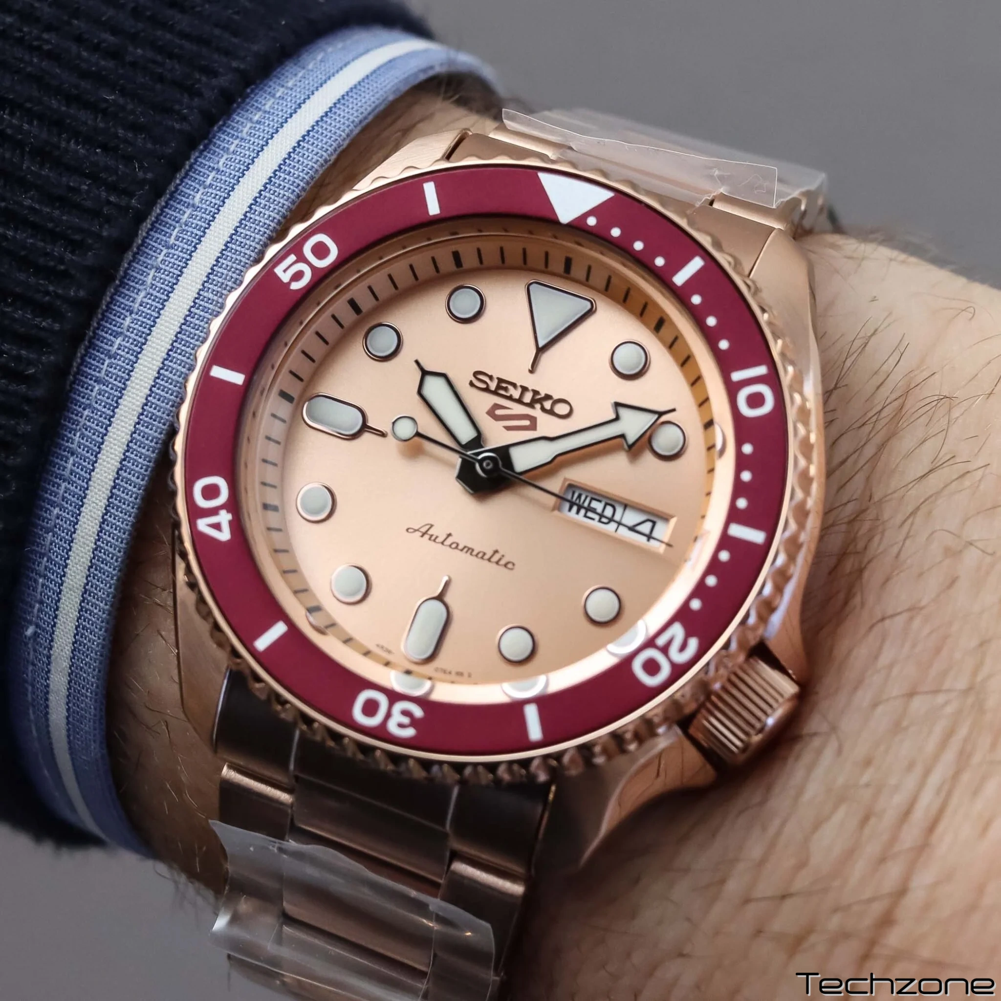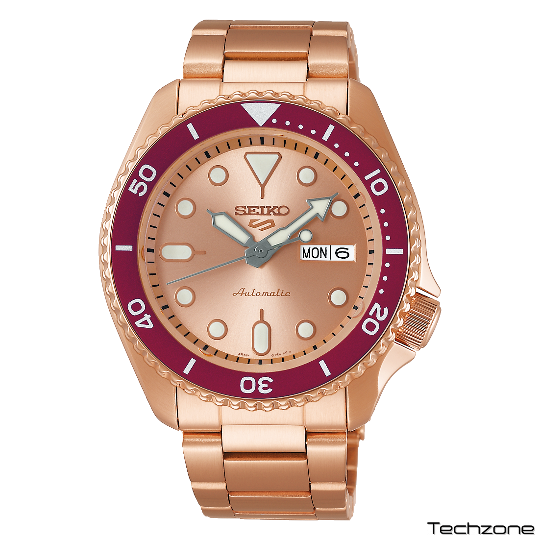 Seiko SRPK08 — це годинник із механізмом 4R36, який поєднує автоматичний хід із можливістю ручного заводу та має запас ходу близько 41 години. Конструкція включає 24 коштовності, функцію зупинки секундної стрілки та відображення дня й дати.