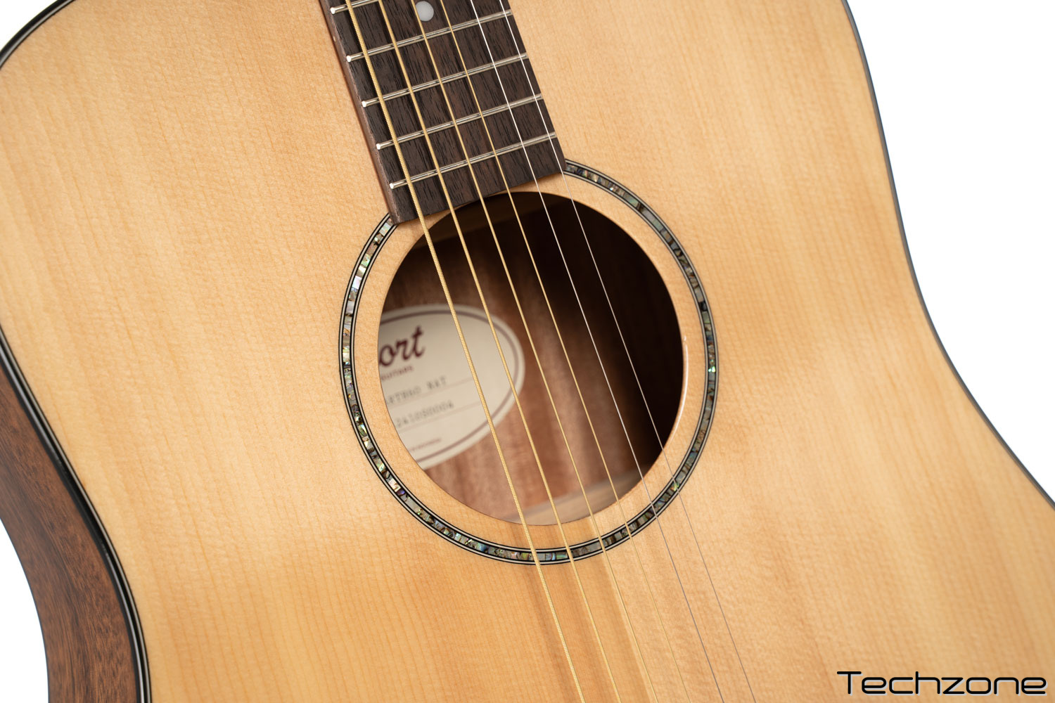 Элегантная окантовка резонаторного отверстия из натурального абалона, дополненная черно-белой окантовкой корпуса. Это сочетание придает акустической гитаре Earth 60 классический вид, который никогда не выйдет из моды.