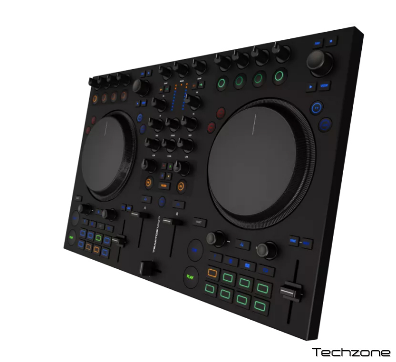 Расположение элементов продумано для быстрой адаптации: четко промаркированные фейдеры, трехполосный эквалайзер, кроссфейдер и уровнемеры создают естественное ощущение работы с аналоговым микшером. Благодаря подсветке и цветовому кодированию контроллер всегда читается даже в темном клубе — подсказки светом сигнализируют об остатке трека, активных лупах или эффектах.