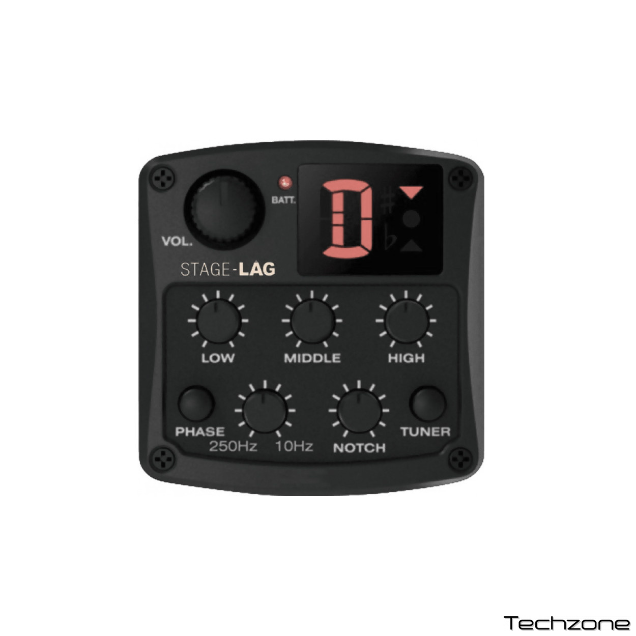 - Вбудований попередній підсилювач StageLâg із регуляторами гучності, нижніх, середніх та високих частот, фази та тюнером