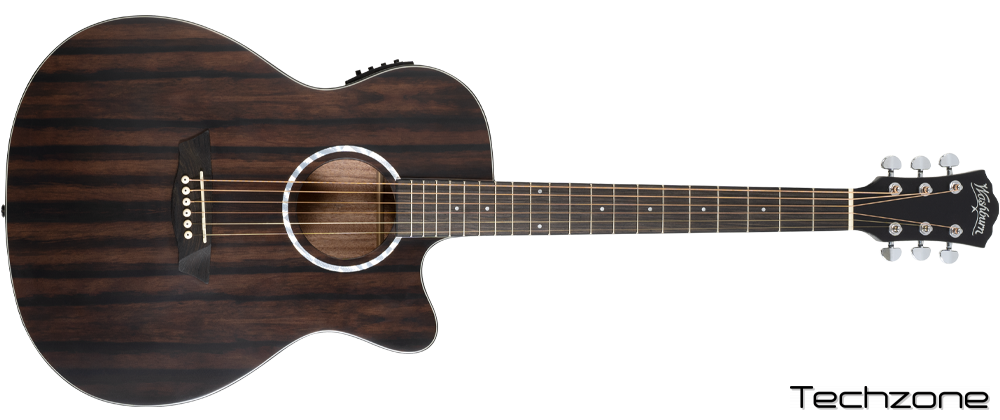 Електро акустична гітара. Форма — Grand Auditorium. Верхня дека -смугасте чорне дерево (Striped Ebony) Задня дека- окуме.Бічні деки -окуме Деревина грифа-червоне дерево (Mahogany) Накладка на гриф - Engineered Wood Поріжок - ABS-пластик Ширина поріжка 43 мм. Мензура 25,5 дюймів. Механіка хром Die-Cast. Брідж інженерна деревина. Електроніка Система передпідсилювача Barcus Berry LX4 Active з тюнером. Колір Смугасте чорне дерево покриття матове.