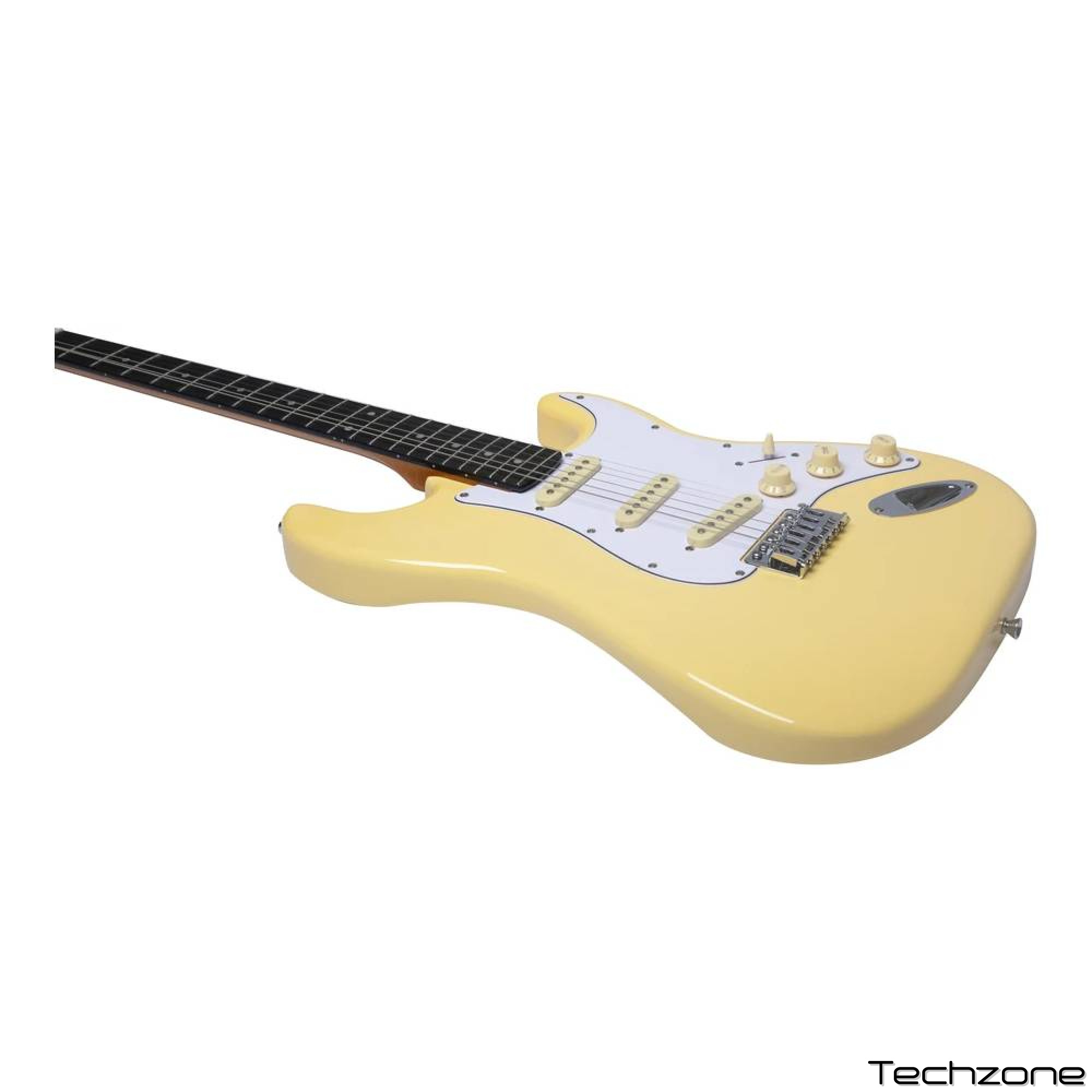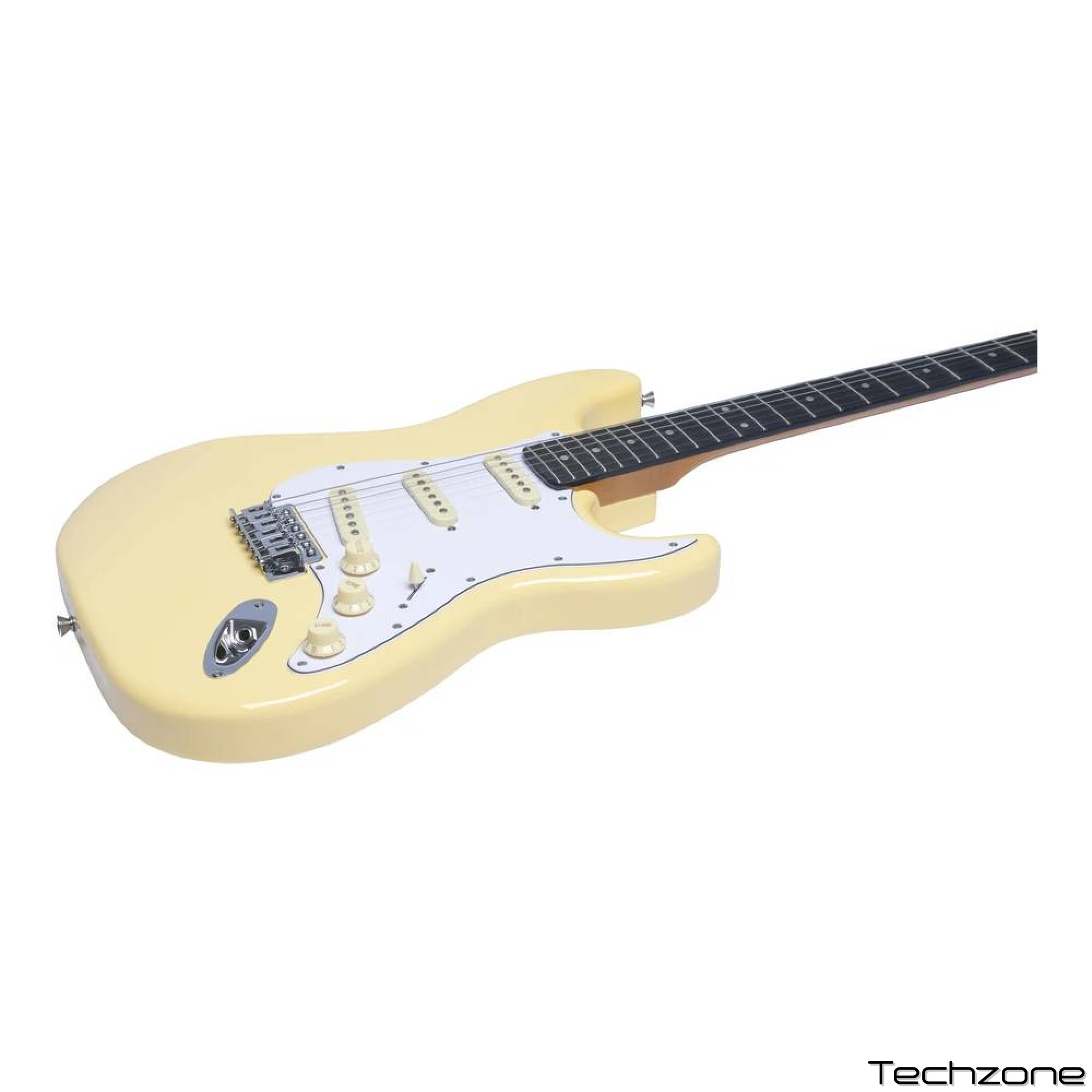 Модель ST300 выполнена в узнаваемом дизайне Strat-style, ставшем символом целой эпохи в истории музыки. Кремовое глянцевое покрытие придает инструменту элегантный вид, а слегка «состаренный» пикгард подчеркивает винтажный характер. Благодаря тщательно продуманной конструкции гитара обеспечивает комфортную игру как во время учебы, так и на сцене.