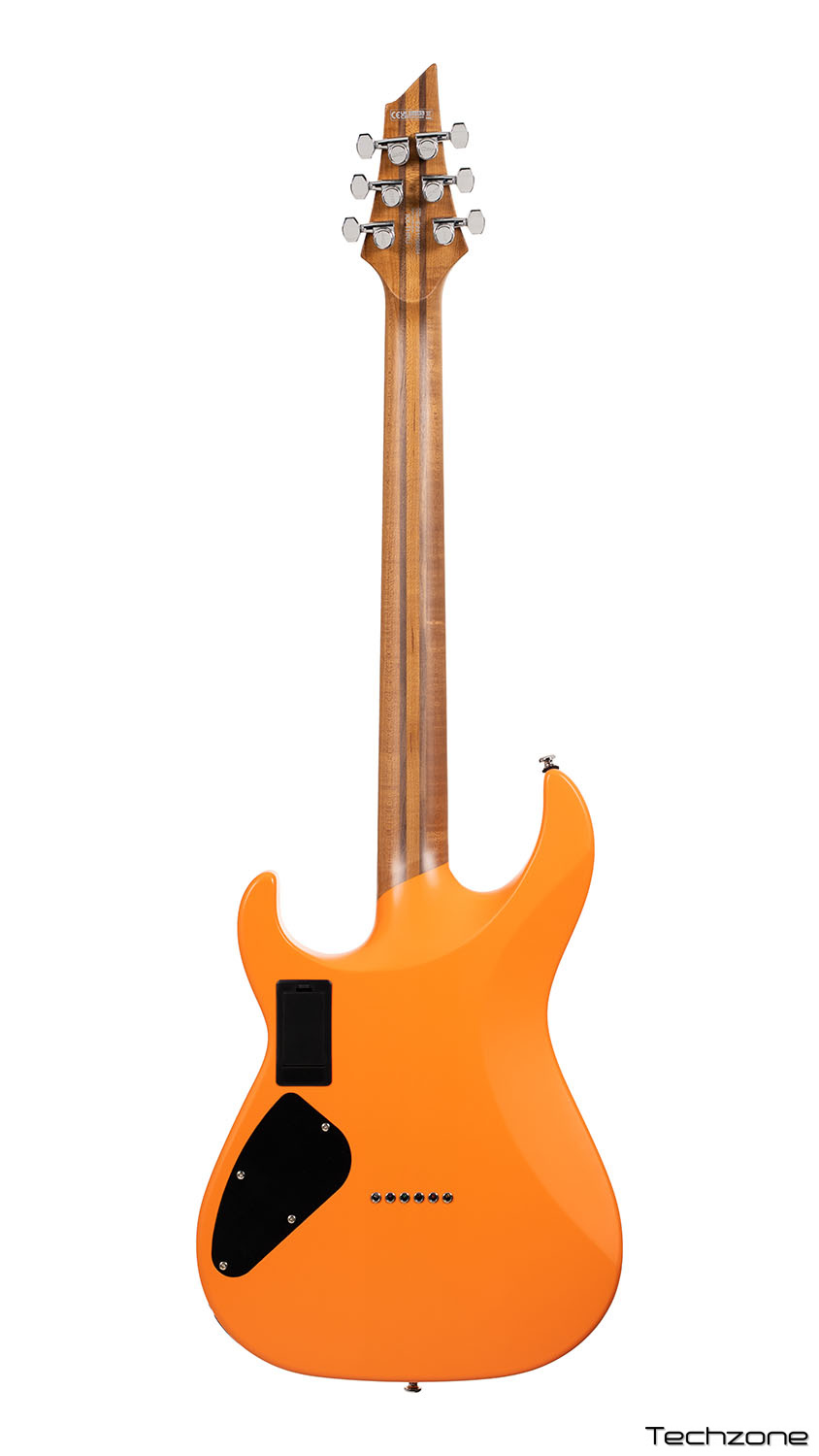 обеспечивающую превосходный сустейн и звучание, а также корпус из липы, обеспечивающий сбалансированную основу и плавный, резонансный отклик в среднем диапазоне. Его 5-составной гриф из обожженного клена и ореха обеспечивает повышенную стабильность и резонанс, а обожженный клен улучшает как ощущения при игре, так и долговечность. "Slim – D" профиль грифа и мензура 25,5 дюймов (648 мм) обеспечивают быструю и комфортную игру. Гитара оснащена ладами Jumbo из нержавеющей стали на радиусной накладке грифа для легкой техничной игры.
