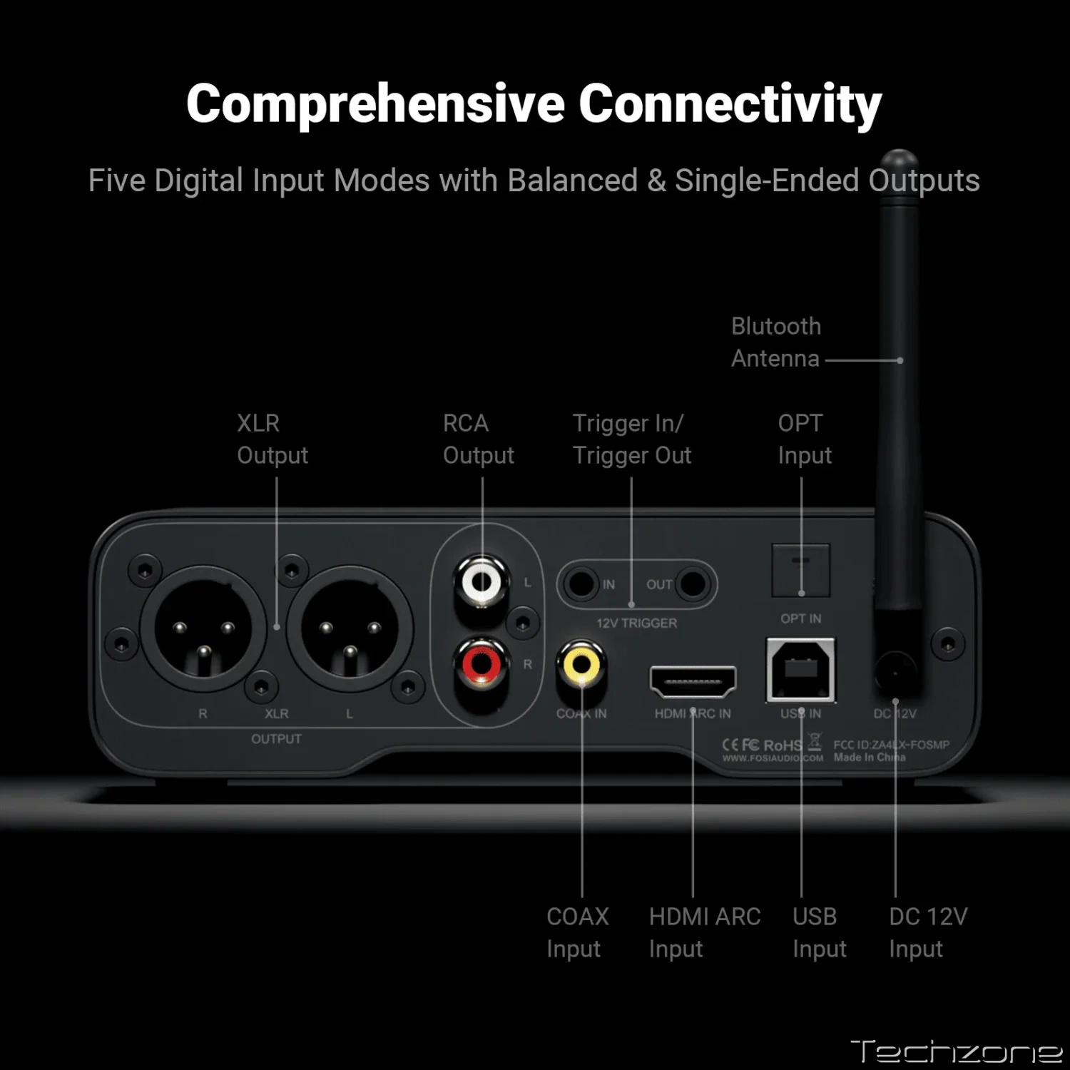ZD3 забезпечує широкий спектр підключень: Bluetooth, USB, OPT, COAX, HDMI ARC та збалансовані виходи XLR/RCA. Така гнучкість дозволяє налаштувати аудіосистему під будь-який сценарій використання.
