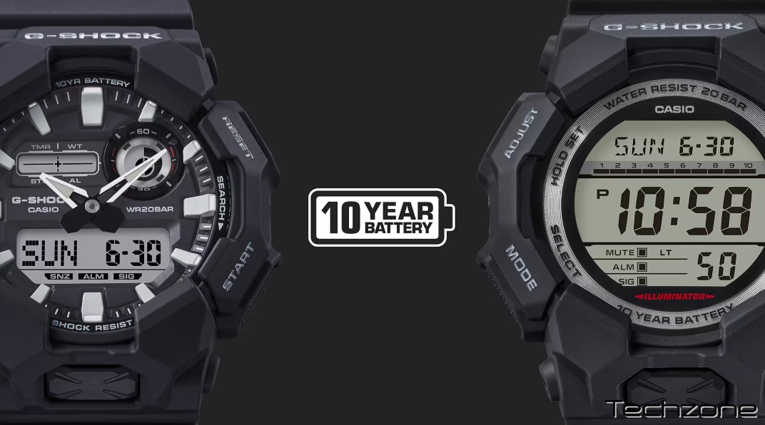 Насолоджуйтесь меншою кількістю замін батарейок завдяки великому корпусу G-SHOCK з 10-річним терміном служби батареї, про який вам не доведеться турбуватися довго.