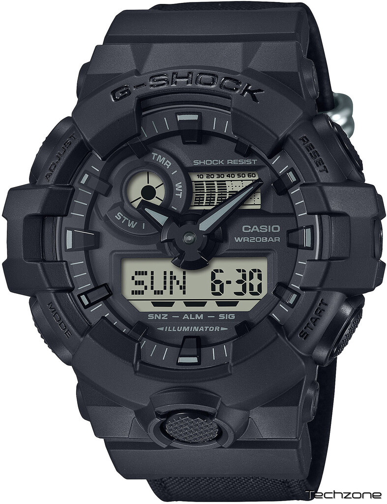 GA-700BCE-1A от G-SHOCK – это цифро-аналоговая модель часов, оснащенная экологически чистым нейлоновым ремешком Cordura. Выполненный в полностью черных тонах, этот G-SHOCK добавит вашему запястью нотку уличного и утилитарного стиля.