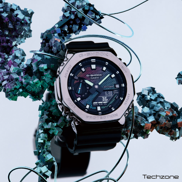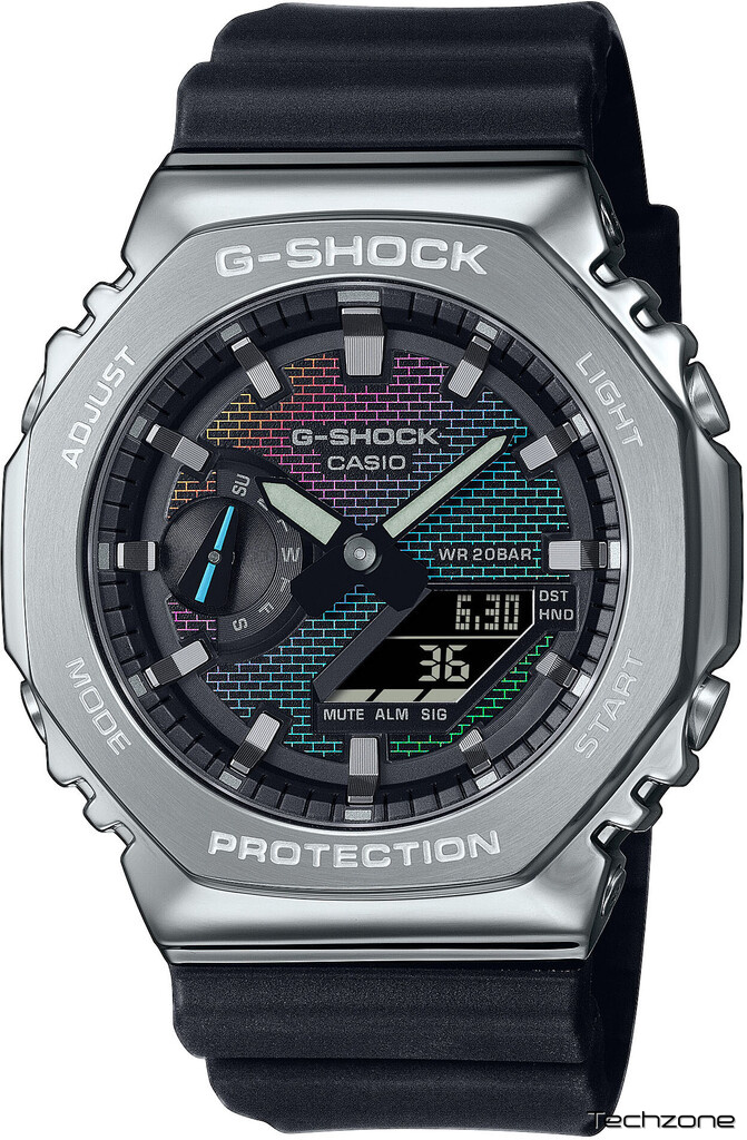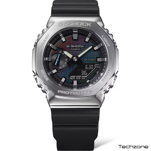 Представляємо сміливі дизайнерські рішення з використанням оригінального малюнка цегляної стіни перших G-SHOCK у повнокольоровому виконанні. Веселкове парове покриття відтворює символічний малюнок цегляної стіни в яскравих райдужних відтінках, які змінюються залежно від освітлення. Барвистий дизайн залишається вірним витокам G-SHOCK і духу завзятості, необхідної для подолання бар'єрів і постійного розширення кордонів. Крутий, барвистий модний аксесуар із динамічним дизайном, який вражає уяву з будь-якого ракурсу.