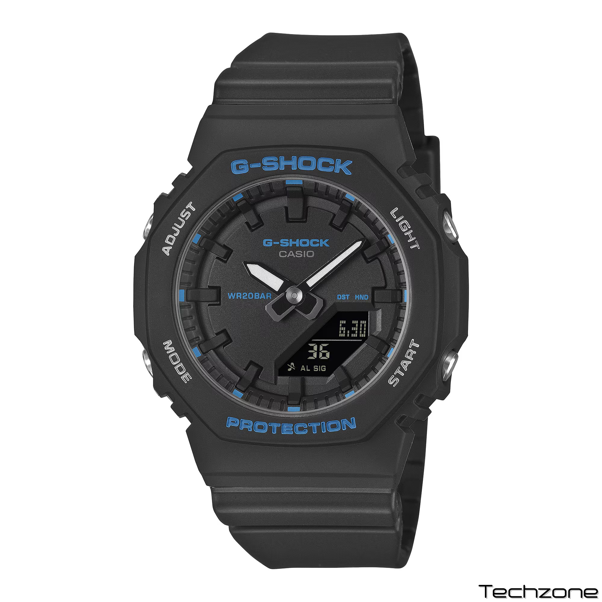Додайте трохи синього кольору з компактним годинником GMA-P2100 у мінімалістичному стилі.