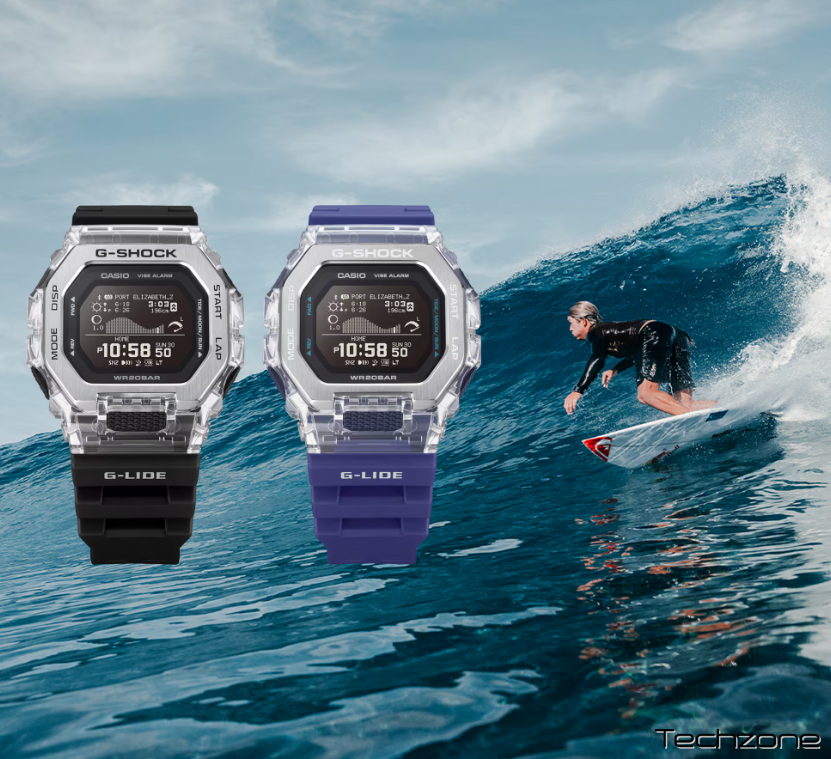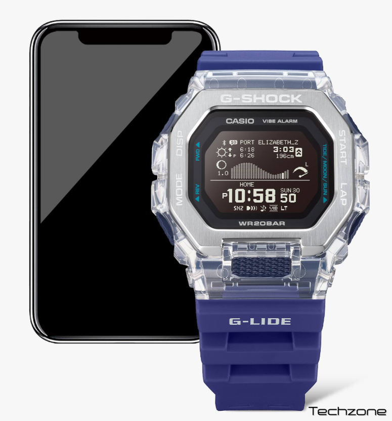 Получите прочность и функциональность, которые требует ваш серфинговый стиль жизни, а также летние материалы и цвета, которые вы любите, в G-SHOCK линейки G-LIDE. Вдохновленный летним серфингом, безель изготовлен из двух разных материалов, имитирующих мерцающие волны, блестящие на солнце. Верхняя часть безеля из нержавеющей стали с зеркальными скошенными краями едва заметно контрастирует с глянцевой полупрозрачностью основания безеля из смолы. Ремешок изготовлен из биоуретана и имеет прорезь для лучшей посадки и отведения воды и пота. Ключевые компоненты смолы, используемые в ремешке, изготовлены из биосмолы, материала, который, как ожидается, поможет уменьшить воздействие на окружающую среду. Все это обеспечивает комфортное ношение, которое вы ищете, чтобы вы могли сосредоточиться на катании на волнах. Получите полную функциональность в своих руках с помощью Smartphone Link. Просто воспользуйтесь специальным приложением, чтобы выбрать одно из примерно 3300 основных мест для серфинга по всему миру и отправлять на часы информацию о приливах и условиях дневного света в зависимости от местоположения. Высококачественный ЖК-дисплей MIP также улучшает видимость и отображает четкий график приливов и возраст Луны, а также время и уровень приливов/отливов, а также время восхода/заката солнца — все это с первого взгляда. Эти часы созданы, чтобы помочь серферам готовиться к сложным соревнованиям по всему миру.