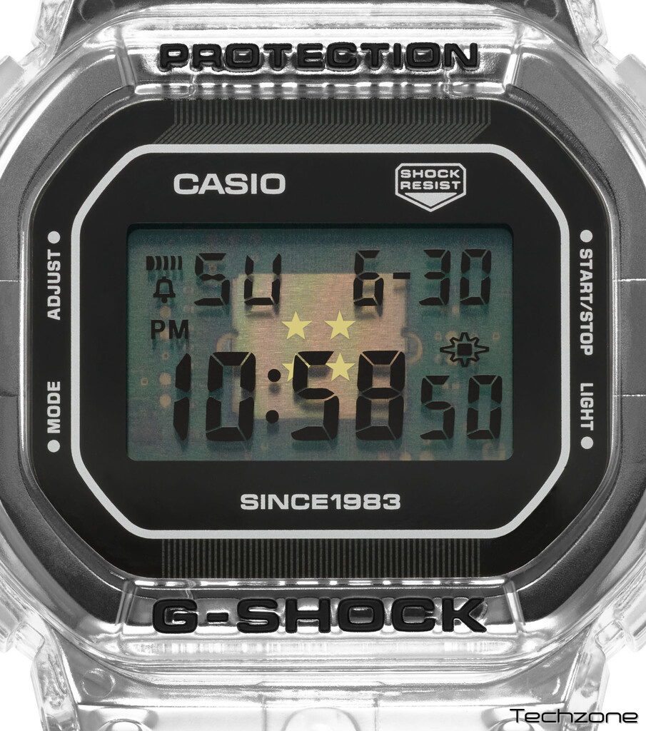 У ювілейній серії G-SHOCK Clear Remix, присвяченій 40-річчю G-SHOCK, популярні моделі G-SHOCK деконструйовані та доповнені прозорими компонентами, що робить їх ще більш прозорими. Прозорі матеріали ремінця, корпусу, циферблата, РК-дисплея і кнопок відкривають вид на підкладку модуля, на яку нанесено знак G і логотип G-SHOCK. На задній кришці корпусу зображено логотип 40-ї річниці, розроблений Еріком Хейзом, а на петлі ремінця вигравірувано чотири зірки на знак особливого ювілею. Ці деталі, а також уперше застосований прозорий корпус із прозорого скловолокна діамід створюють незвичайний дизайн, гідний виняткової обмеженої серії G-SHOCK.