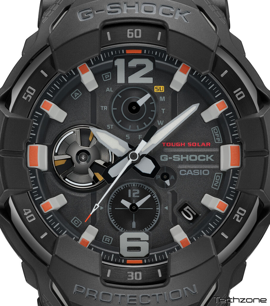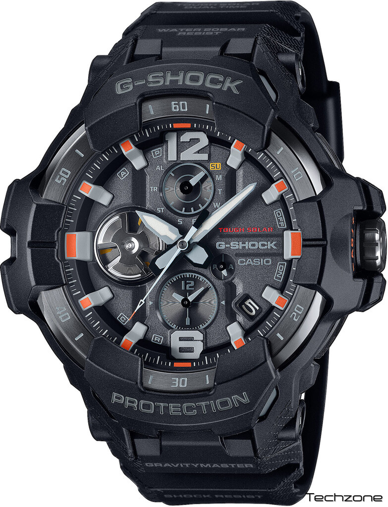 Чим би ви не займалися, де б ви не знаходилися - лінія G-SHOCK Master of G завжди готова вас підтримати. Заснована на моделях GRAVITYMASTER, MUDMASTER і MUDMAN, що забезпечують максимальну продуктивність у складних умовах у повітрі та на землі, ця лінія має чорний корпус годинника, що символізує міцність, з акцентами в яскравих кольорах для надзвичайних ситуацій, що відображають світ професіоналів, які беруть участь у рятувальних операціях та інших критичних місіях. Органічна форма GRAVITYMASTER GR-B300EC натхненна літаками нового покоління і вирізняється плавним зовнішнім дизайном. Структура Carbon Core Guard і широка 3D-лицьова сторона забезпечують міцність, зручність читання і комфортну посадку. Насолоджуйтесь усіма практичними функціями, включно з подвійним часом, що одночасно показує час у двох містах, функцією пам'яті журналу польотів для запису пройдених маршрутів і багато іншого.