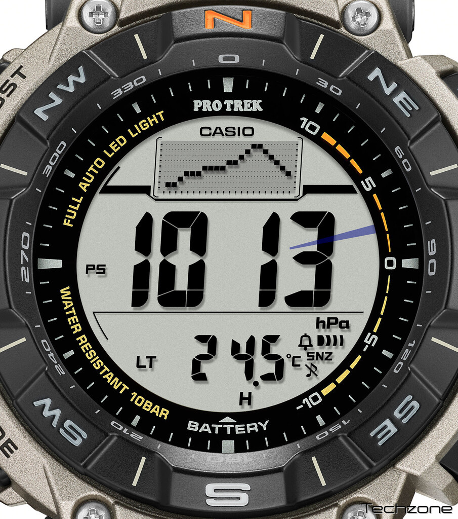 Чоловічий годинник Casio Pro Trek з полімеру з круглим сірим корпусом і титановим браслетом забезпечує практичність і надійність під час активних пригод. Він оснащений кварцовим механізмом, мінеральним склом, цифровою електронною індикацією, підсвічуванням, сонячною батареєю, автоматичним календарем і багатьма іншими функціями. Вони пропонують гарантію 24 місяці та водозахист до 100 WR.