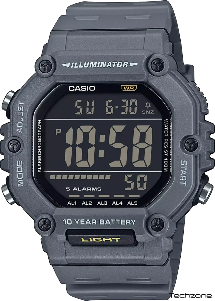 - Корпус і ремінець: міцний полімер у сірому кольорі