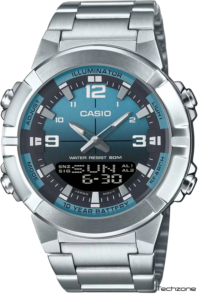 Точный кварцевый механизм с аналого-цифровой индикацией. Корпус изготовлен из высококачественной нержавеющей стали 316L с высокими антикоррозионными свойствами. Светодиодная подсветка. На циферблате отображается текущее число, месяц, год и день недели. Функция хронографа. Функция таймера. Таймеры обратного отсчета напомнят Вам о текущих или особых событиях, издав звуковой сигнал в установленное время. Будильник. Аккумулятор обеспечивает часы достаточным питанием примерно на 10 лет. Записная книжка. Сохраненные имена и телефонные номера всегда под рукой благодаря встроенной базе данных. Отображение текущего времени в основных городах и конкретных областях по всему миру. После настройки автоматический календарь всегда отображает точную дату.