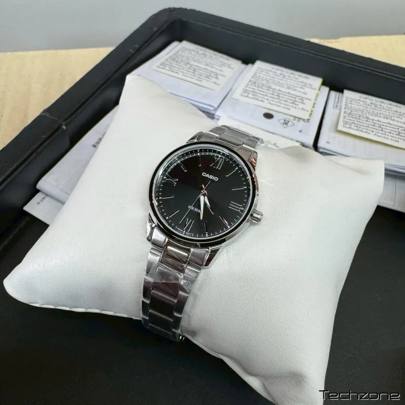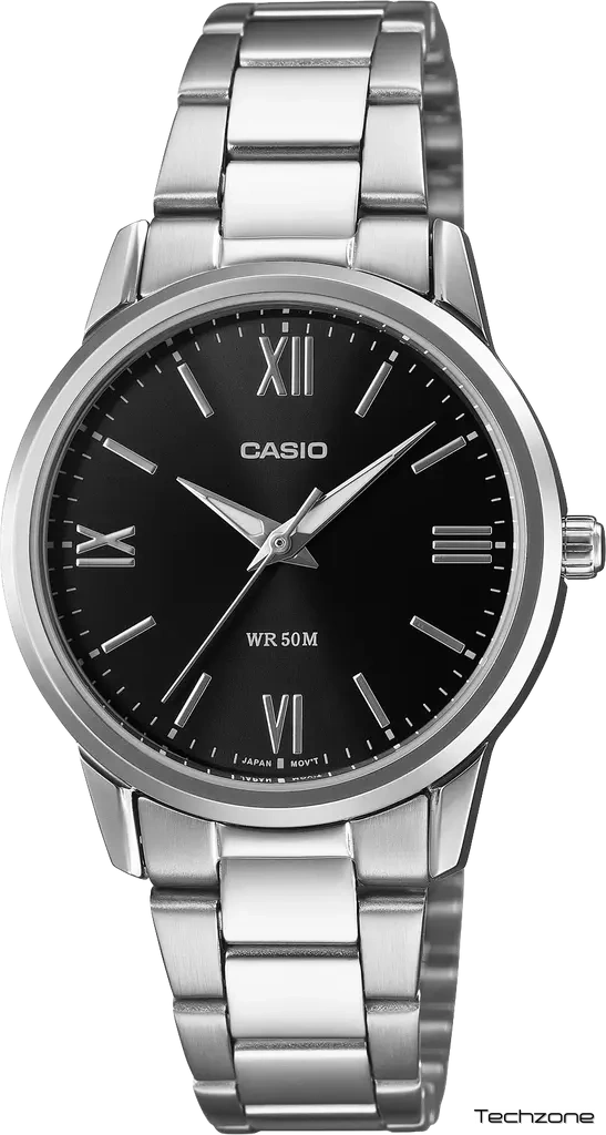 Цей жіночий годинник від Casio — втілення мінімалізму та вишуканого стилю. Завдяки класичному поєднанню сріблястого металу та глибокого чорного циферблата, модель стає універсальним аксесуаром, що однаково доречно виглядає як з діловим костюмом, так і з вечірньою сукнею.