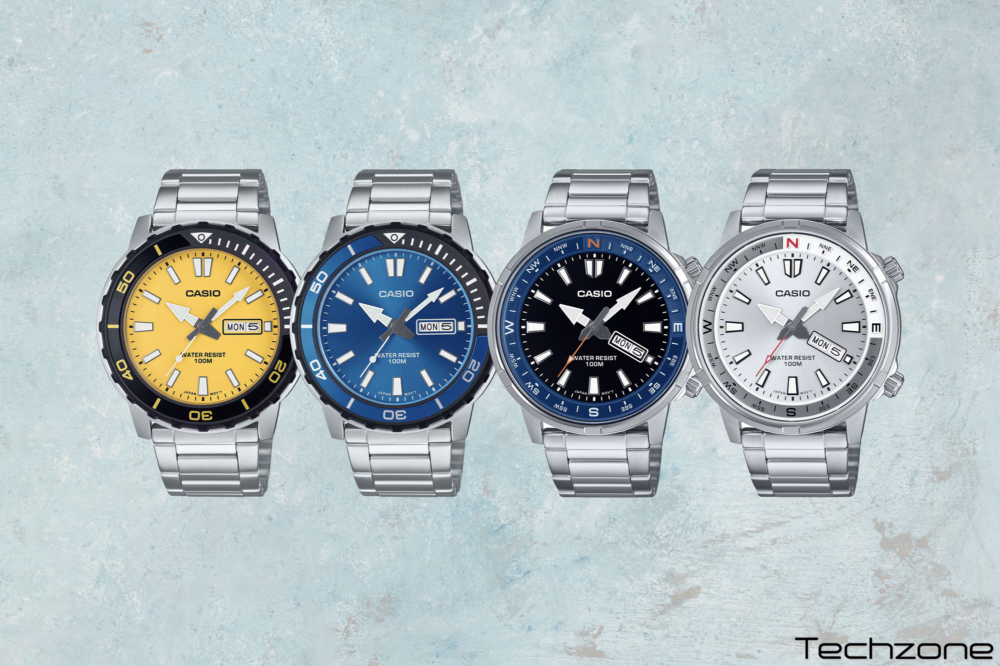Любителям стиля классических часов для ныряния (дайверов) стоит обратить внимание на доступную линейку Casio MTD-125. Хотя сами модели не являются абсолютной новинкой, бренд освежил их, выпустив свежие цветовые решения на элегантном стальном браслете.