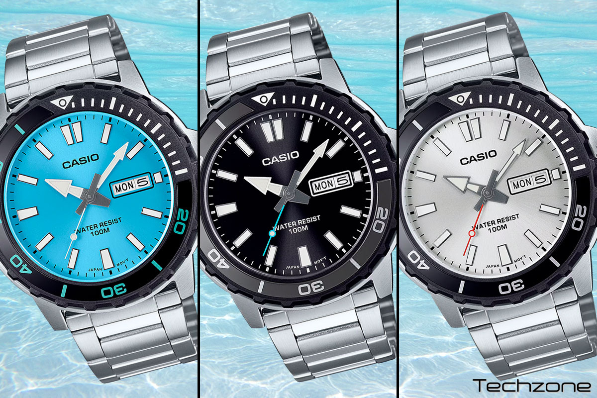 Любителям стиля классических часов для дайвинга (дайверов) стоит обратить внимание на доступную линейку Casio MTD-125. Хотя сами модели не являются абсолютной новинкой, бренд освежил их, выпустив свежие цветовые решения на элегантном стальном браслете.