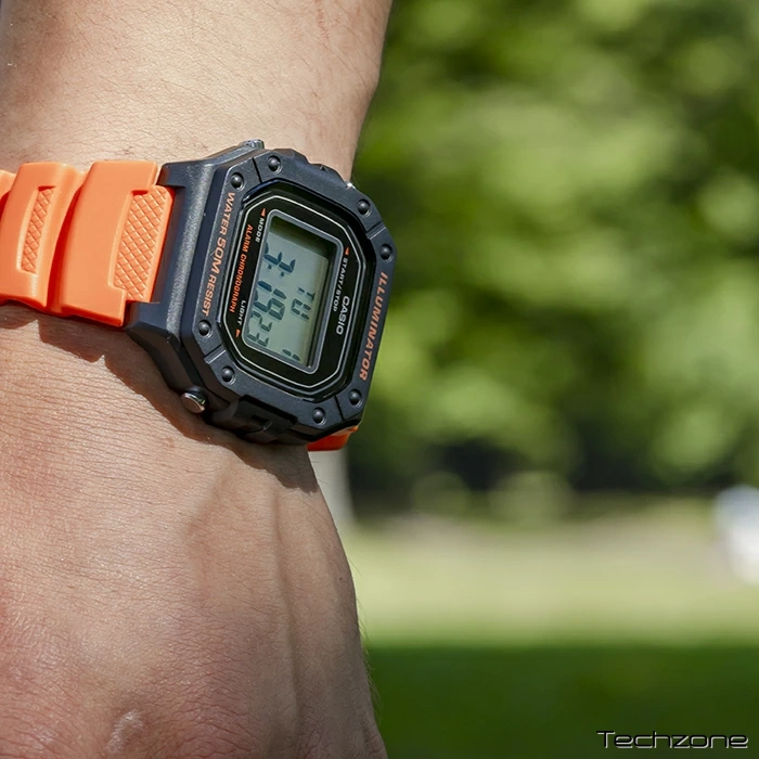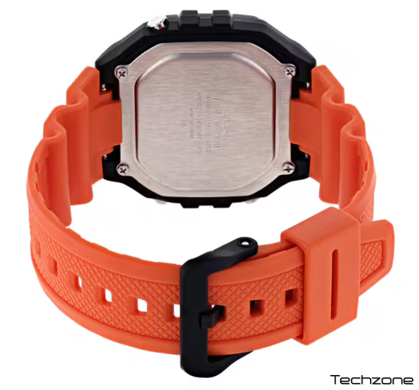 Годинник Casio W-218H-4B2VEF – це яскраве втілення спортивного стилю та бездоганної функціональності, розроблене для активних чоловіків, що цінують надійність у повсякденному житті. Модель вирізняється енергійним помаранчевим полімерним ремінцем з оригінальною хвилястою текстурою, що забезпечує комфортну посадку та легкість – вага годинника становить лише 37 грамів. Чорний полімерний корпус сучасної восьмикутної форми є не лише стильним, а й міцним. Акрилове скло захищає чіткий цифровий циферблат, який завдяки підсвічуванню «ILLUMINATOR» легко читається в будь-яких умовах. Профіль корпусу демонструє ергономічно розташовані кнопки, а задня кришка з нержавіючої сталі підкреслює довговічність кварцового механізму калібру 3224. Водозахист 50 WR дозволяє не турбуватися про годинник під час контакту з водою, будь то миття рук чи невеликий дощ. До функціоналу входять будильник, секундомір, індикація дати та дня тижня, автоматичний календар та 24-годинний формат часу, що додає зручності у повсякденному використанні. Casio W-218H-4B2VEF – це практичний та довговічний аксесуар, що поєднує міцність, зручність та весь необхідний набір функцій для активного способу життя.