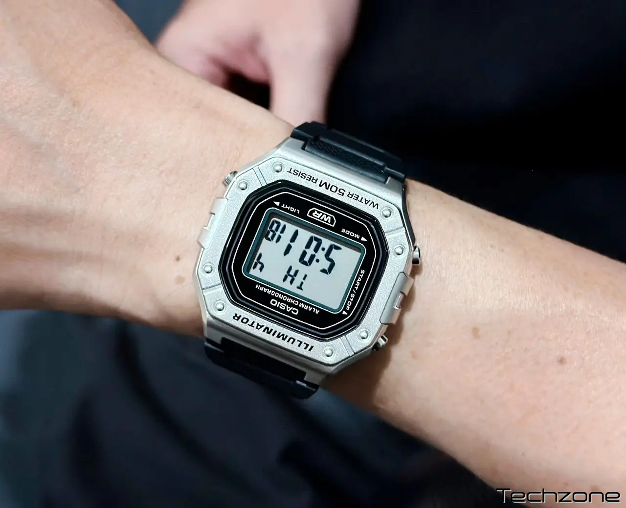 Годинник має корпус розміром 44,4 × 43,2 × 11 мм та вагу лише 37 г, що робить його легким і зручним у щоденному використанні. Корпус і безель виконані зі смоли, ремінець також смоляний, а водонепроникність до 50 метрів дозволяє носити його навіть під час плавання. Живлення забезпечує батарея CR2016 із приблизним терміном служби 7 років, скло виготовлене зі смоли, а ремінець сумісний із розміром від 145 до 215 мм.