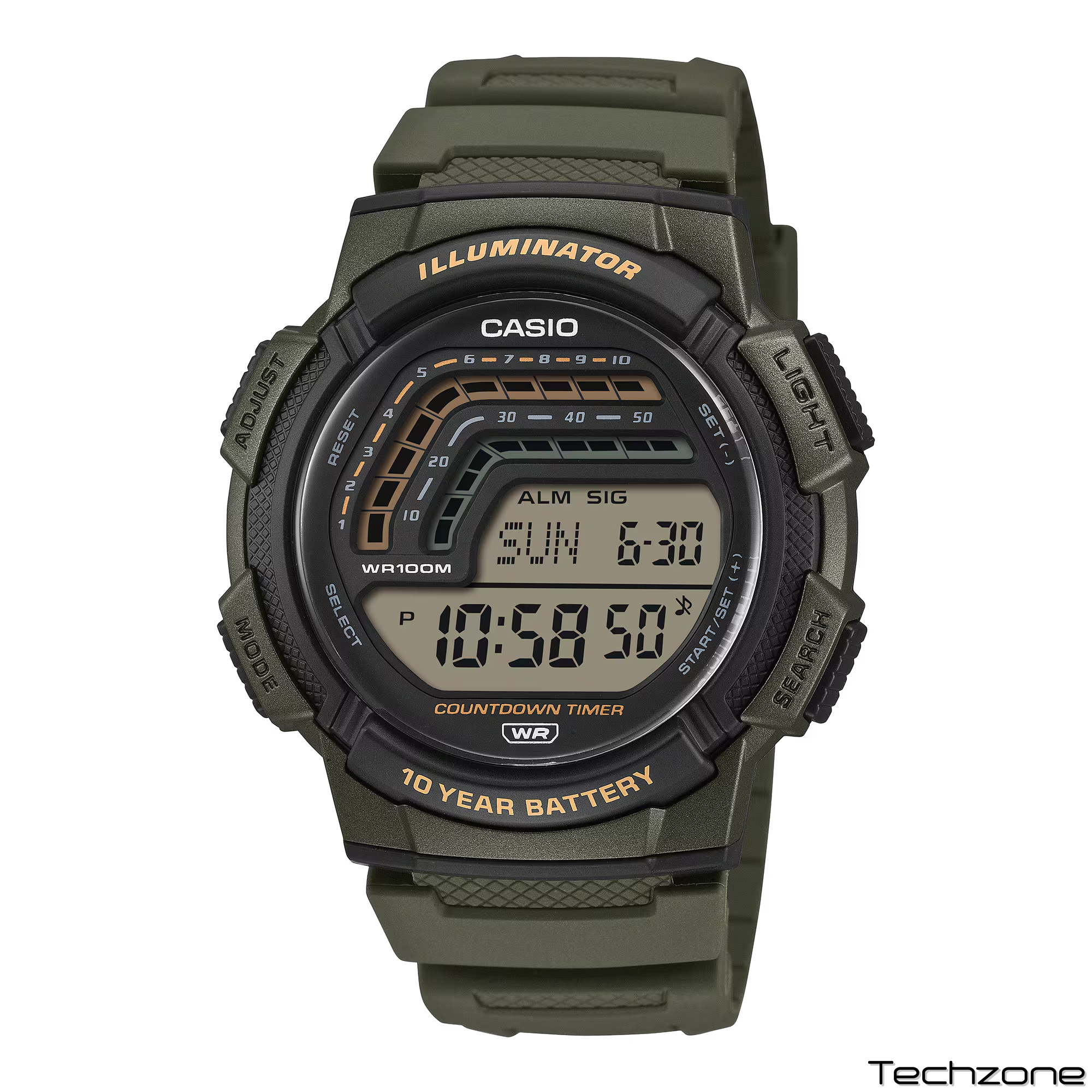 Водонепроникність до 100 метрів, десятирічний термін служби батареї, світлодіодне підсвічування, а також зручні функції, такі як секундомір, будильник тощо.