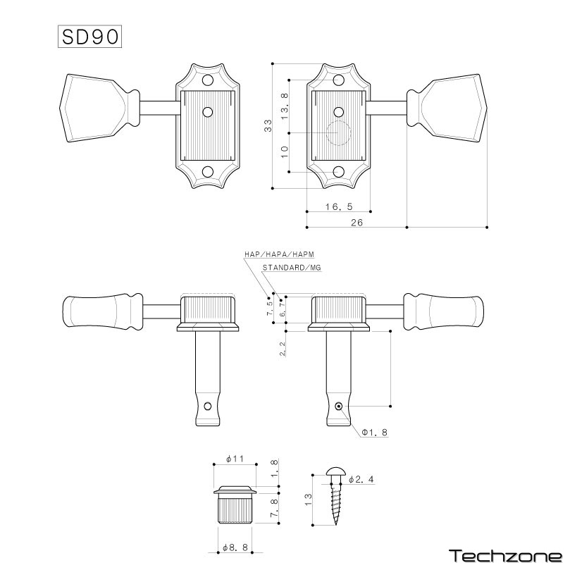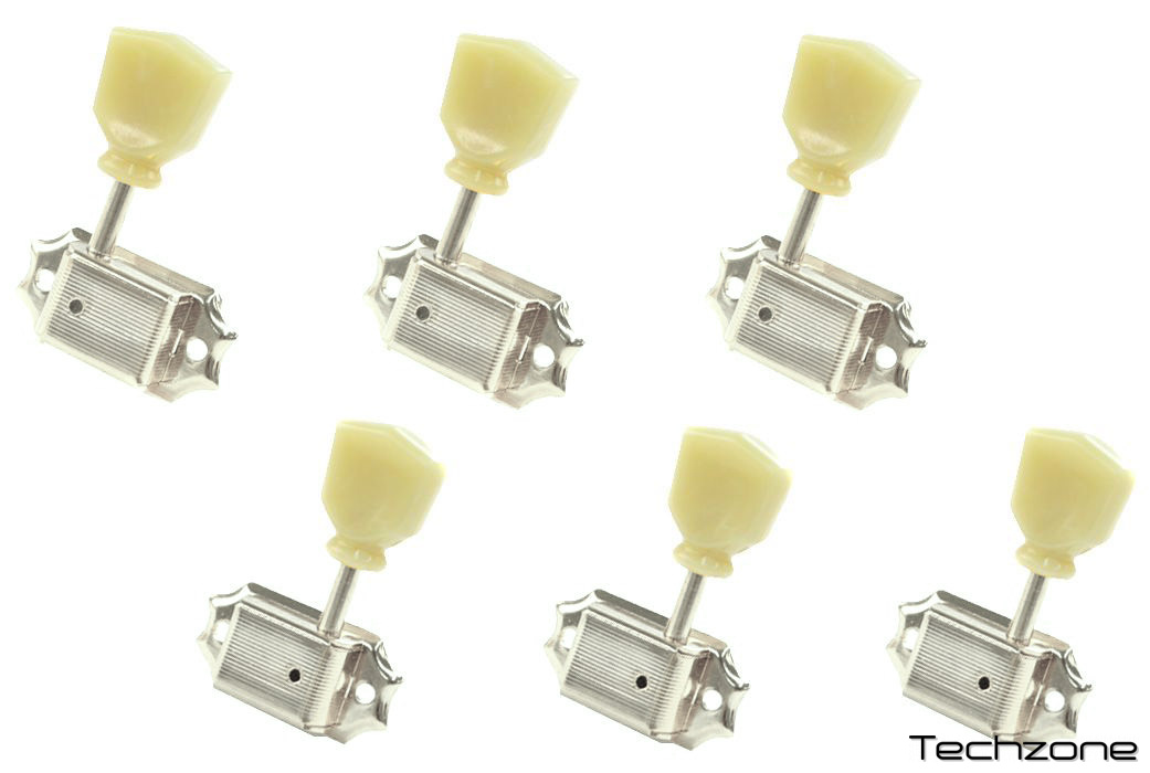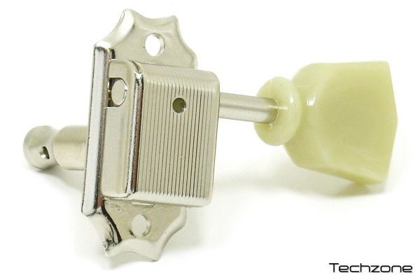 Набор 3+3 Для гитар типа Les Paul Тип Kluson Передаточное отношение 1:15 2 отверстия под саморезы Пластиковый наконечник типа SL Цвет: никель (N) Производство Япония Гарантия 12 месяцев