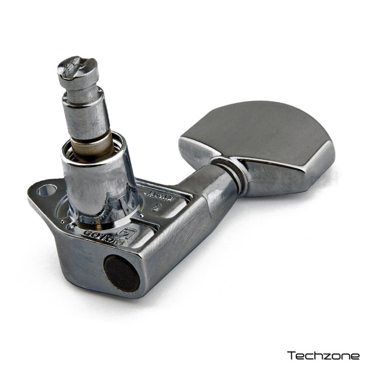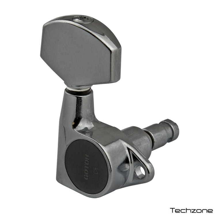 Замковая система Magnum Lock Замковая система Magnum Lock Оригинальная самозапирающаяся замковая система Gotoh Magnum Lock позволяет зафиксировать струну без риска ее порчи или соскальзывания. Также особенностью этой системы являются уменьшенные отверстия для первой, второй и третьей струн. Система смазки Lubri-Coat Благодаря специальной смазке Gotoh, трение внутренних шестеренок значительно снижается, благодаря чему ход колка становится мягче и точнее, а срок службы увеличивается. Система Rock Solid В следующий раз, когда будете менять струны, обратите внимание на штоки колков. Посмотрите, как они ходят из стороны в сторону! Эта проблема существует с момента изобретения гитарных колков. И вот, наконец, компания Gotoh решила ее представив систему "Rock-Solid". Набор 3+3 Замковая система Magnum Lock Передаточное отношение 1:18 Крепление под углом 90° Металлический наконечник типа 01 Цвет: черный никель (СK) Производство Япония Гарантия 12 месяцев