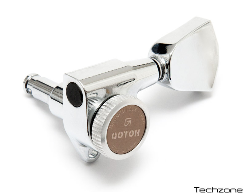 Замковая система Magnum Lock Traditional Классическая замковая система позволяет фиксировать струну в колке для более стабильного строя и ускоренной замены струн. Система смазки Lubri-Coat Благодаря специальной смазке Gotoh, трение внутренних шестеренок значительно снижается, благодаря чему ход колка становится мягче и точнее, а срок службы увеличивается. Система Rock Solid В следующий раз, когда будете менять струны, обратите внимание на штоки колков. Посмотрите, как они ходят из стороны в сторону! Эта проблема существует с момента изобретения гитарных колков. И вот, наконец, компания Gotoh решила ее представив систему "Rock-Solid". Набор 3+3 Замковая система Magnum Lock-Trad Передаточное отношение 1:18 Крепление под углом 90° Металлический наконечник типа 04 Цвет: хром (С) Производство Япония Гарантия 12 месяцев