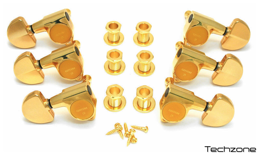 Система смазки Lubri-Coat Благодаря специальной смазке Gotoh, трение внутренних шестеренок значительно снижается, благодаря чему ход колка становится мягче и точнее, а срок службы увеличивается. Система Rock Solid В следующий раз, когда будете менять струны, обратите внимание на штоки колков. Посмотрите, как они ходят из стороны в сторону! Эта проблема существует с момента изобретения гитарных колков. И вот, наконец, компания Gotoh решила ее представив систему "Rock-Solid". Набор 3+3 Передаточное отношение 1:18 Крепление под углом 90° Металлический наконечник типа 20 Цвет: золотой (GG) Производство Япония Гарантия 12 месяцев