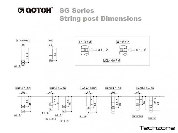 Замковая система Magnum Lock Замковая система Magnum Lock Оригинальная самозапирающаяся замковая система Gotoh Magnum Lock позволяет зафиксировать струну без риска ее порчи или соскальзывания. Также особенностью этой системы являются уменьшенные отверстия для первой, второй и третьей струн. Система регулировки высоты штока H.A.P. При помощи несложной отстройки вы можете отрегулировать угол изгиба струны выше нулевого порожка, для достижения ее оптимального натяжения. Система смазки Lubri-Coat Благодаря специальной смазке Gotoh, трение внутренних шестеренок значительно снижается, благодаря чему ход колка становится мягче и точнее, а срок службы увеличивается. Система Rock Solid В следующий раз, когда будете менять струны, обратите внимание на штоки колков. Посмотрите, как они ходят из стороны в сторону! Эта проблема существует с момента изобретения гитарных колков. И вот, наконец, компания Gotoh решила ее представив систему "Rock-Solid". Набор 6 в ряд Замковые Magnum Lock Регулируемая высота штоков H.A.P. Передаточное отношение 1:16 Крепление под углом 45° Металлический наконечник типа 07 Цвет: черный никель (СK) Производство Япония Гарантия 12 месяцев