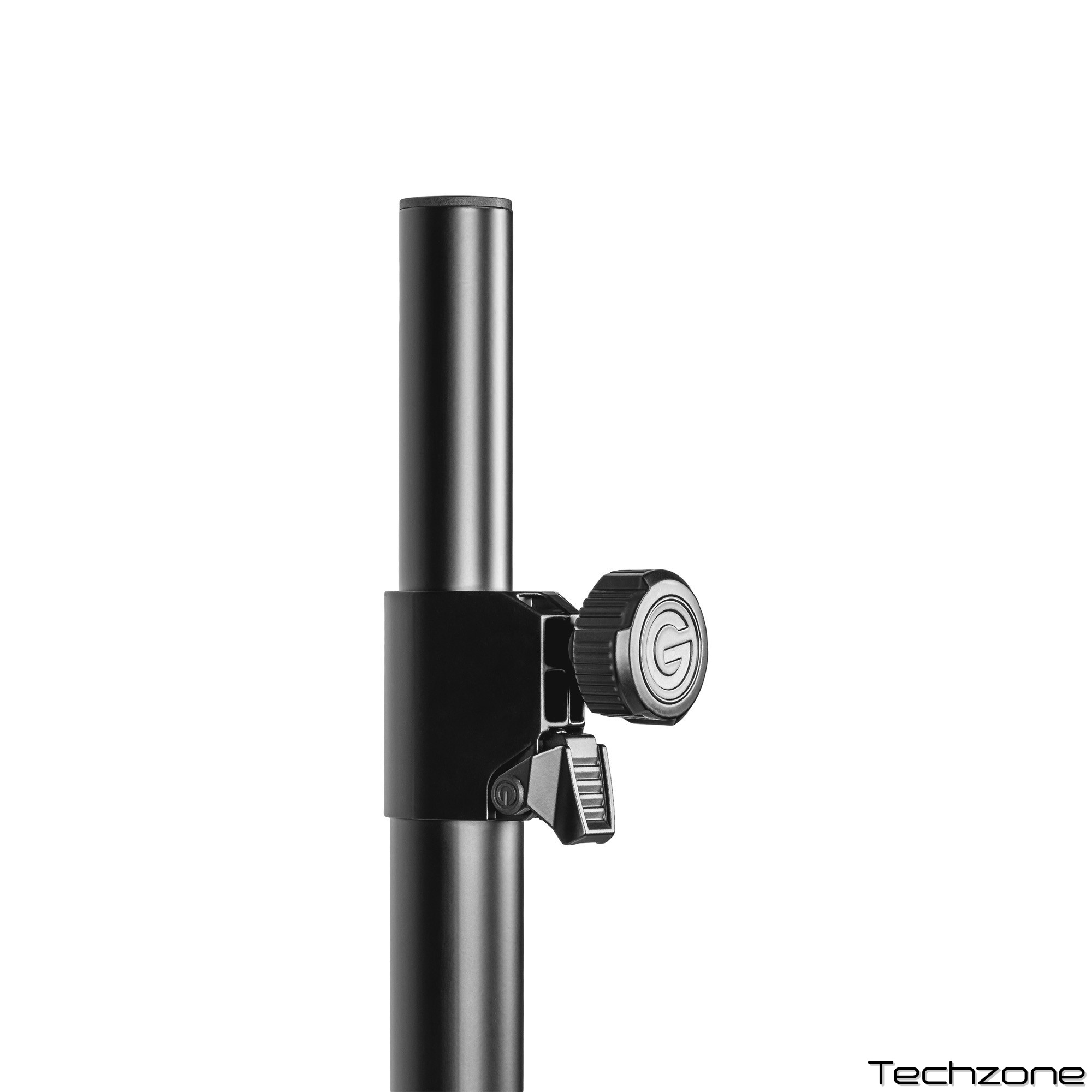 Gravity TSP 2332 B — регулируемая опора для акустических систем Touring (М20 - 35-ми). • Прочная конструкция • Простота в эксплуатации • Компактность • Автоматический механизм фиксации LockPin® Прочная конструкция из стали с черным порошковым покрытием регулируется по высоте от 82 до 140 см с помощью автоматического механизма LockPin®, специально разработанного для серии Touring. Это значительно ускоряет настройку, поскольку фиксатор регулировки высоты автоматически встает на место при подъеме. Никаких дополнительных штифтов не требуется. Gravity TSP 2332 B имеет резьбу M20 на нижнем конце стойки, поэтому вы можете просто навинтить ее на сабвуфер.