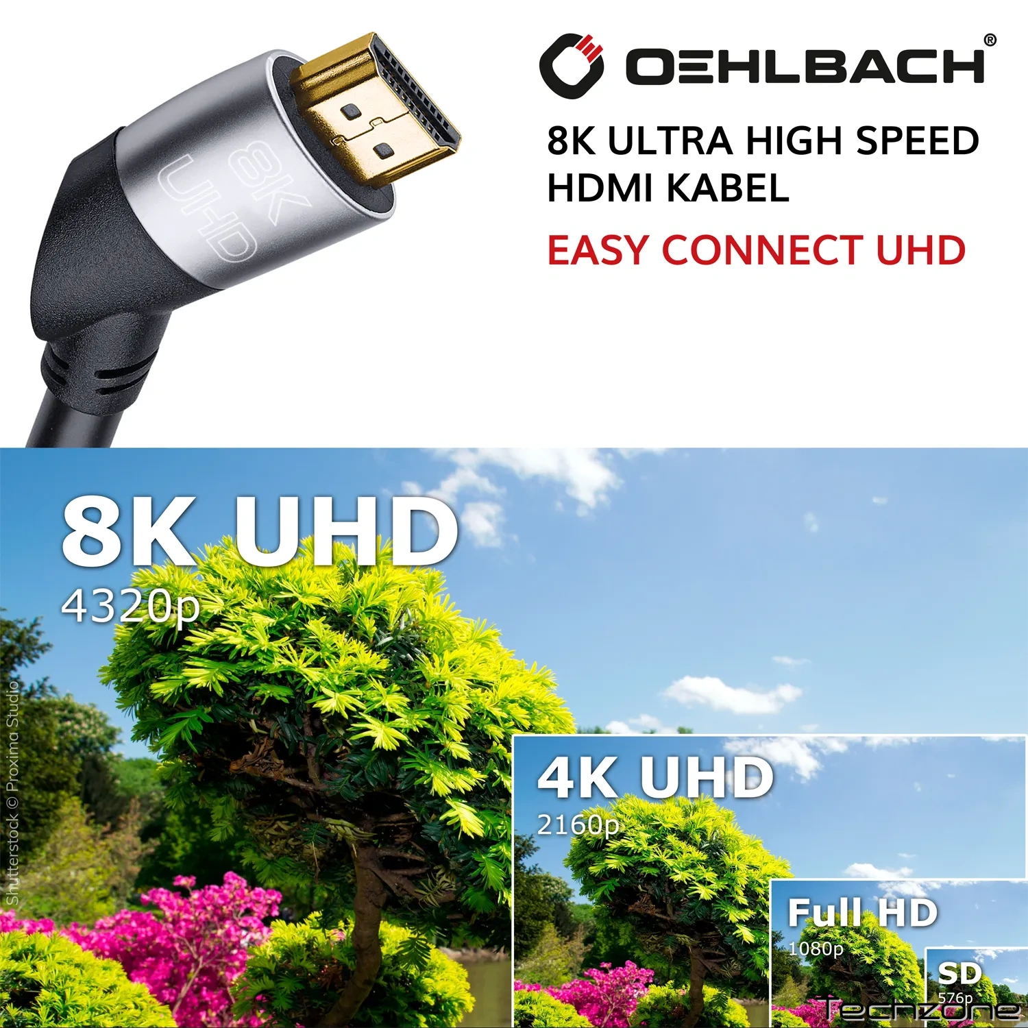Кабель 8K Ultra High Speed HDMI забезпечує високу якість передачі даних у нові домашні розваги та забезпечує швидкість передачі даних до 48 Гбіт/с для повної пропускної здатності сучасних сигналів Ultra HD 8K (до 60 Гц) та 4K (до 120 Гц). 3D-звукові формати Dolby Atmos та DTS передаються без втрат за допомогою Easy Connect UHD до підключеного AV-пристрою. Міцні роз'єми під кутом 40° (бічні сторони розташовані дзеркально, див. фото) гарантують максимальну стабільність сигналу, внутрішній провідник виготовлений з безкисневої міді (OFC), а кабель має потрійне екранування, що забезпечує високоякісний захист від перешкод.